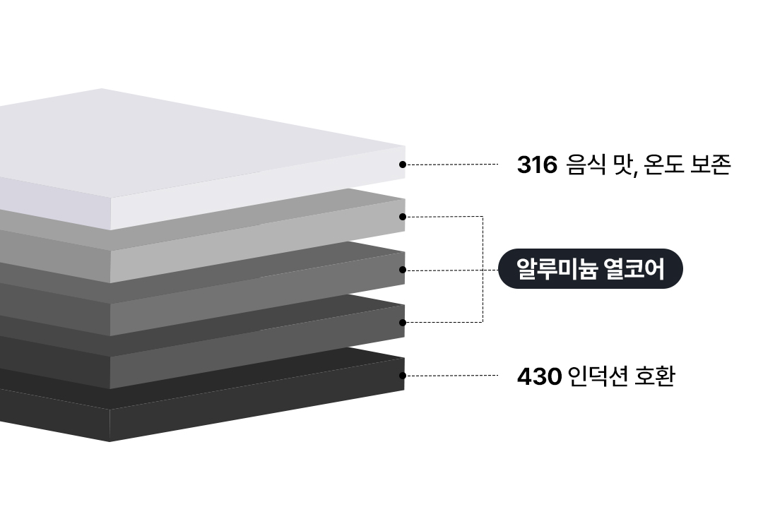 바깥쪽 430 스테인리스가 인덕션과의 호환을 만들죠.