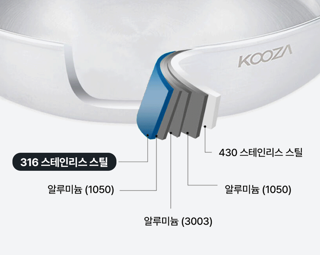 가장 안쪽의 316 스테인리스가 음식의 맛은 그대로 지켜주고,