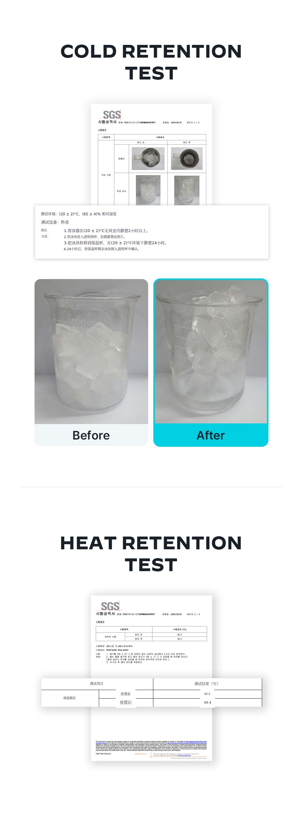 * 36小时保冷性能通过在保温杯中加入冰块和4°C的水并测量实际结果得到验证。