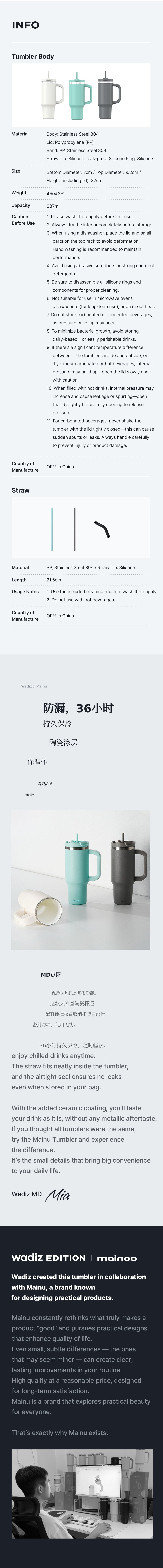 由Mainu与Wadiz合作推出的全新陶瓷涂层保温杯。