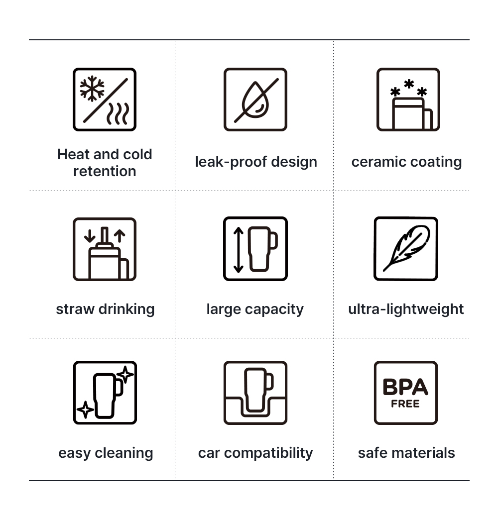 1. 🥤 36小时保温保冷陶瓷杯 - 陶瓷涂层保持饮品新鲜36小时 2. 🛡️ 完全防漏设计 - 密封结构与2合1吸管方便饮用 3. 💰 独家优惠价格 - 超级早鸟折扣及套装购买