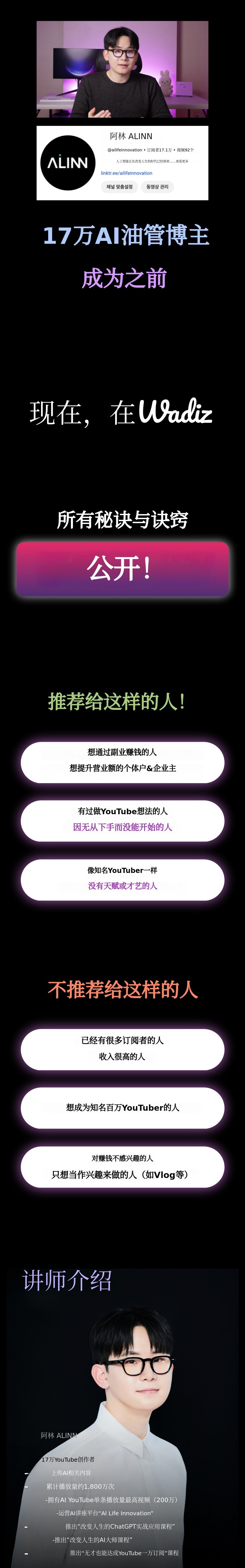 只要你有意志和执行力,任何人都可以通过YouTube获得副业以上的收入。基于我的经验,我将关于YouTube的所有内容都融入到这一堂课中。