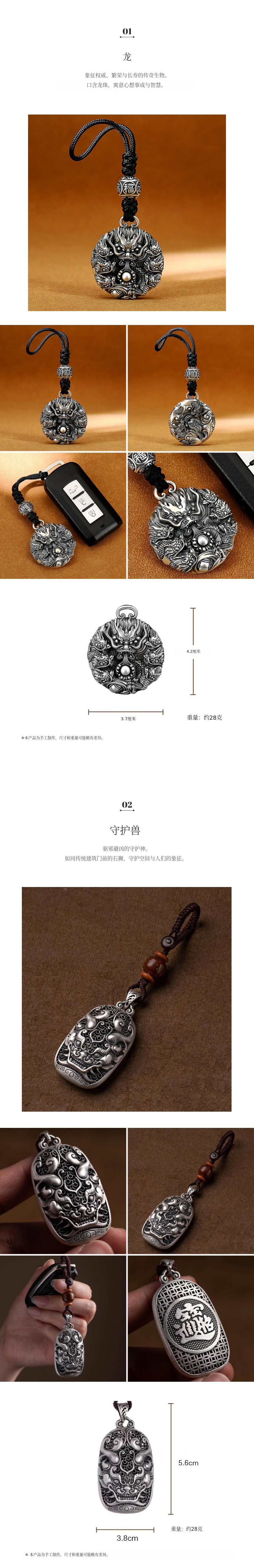 1. 🧧 传统纹样藏银钥匙扣 - 精雕细刻龙、鲤鱼等吉祥图案 2. 🍀 象征财富与繁荣 - 祈愿好运、守护、家庭和谐与成功 3. 🎁 限量手工制作 - 全手工高品质钥匙扣,意义非凡
