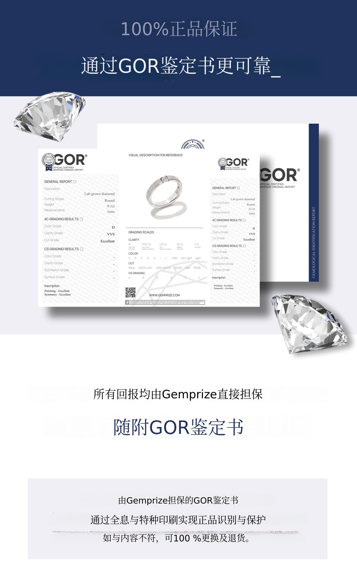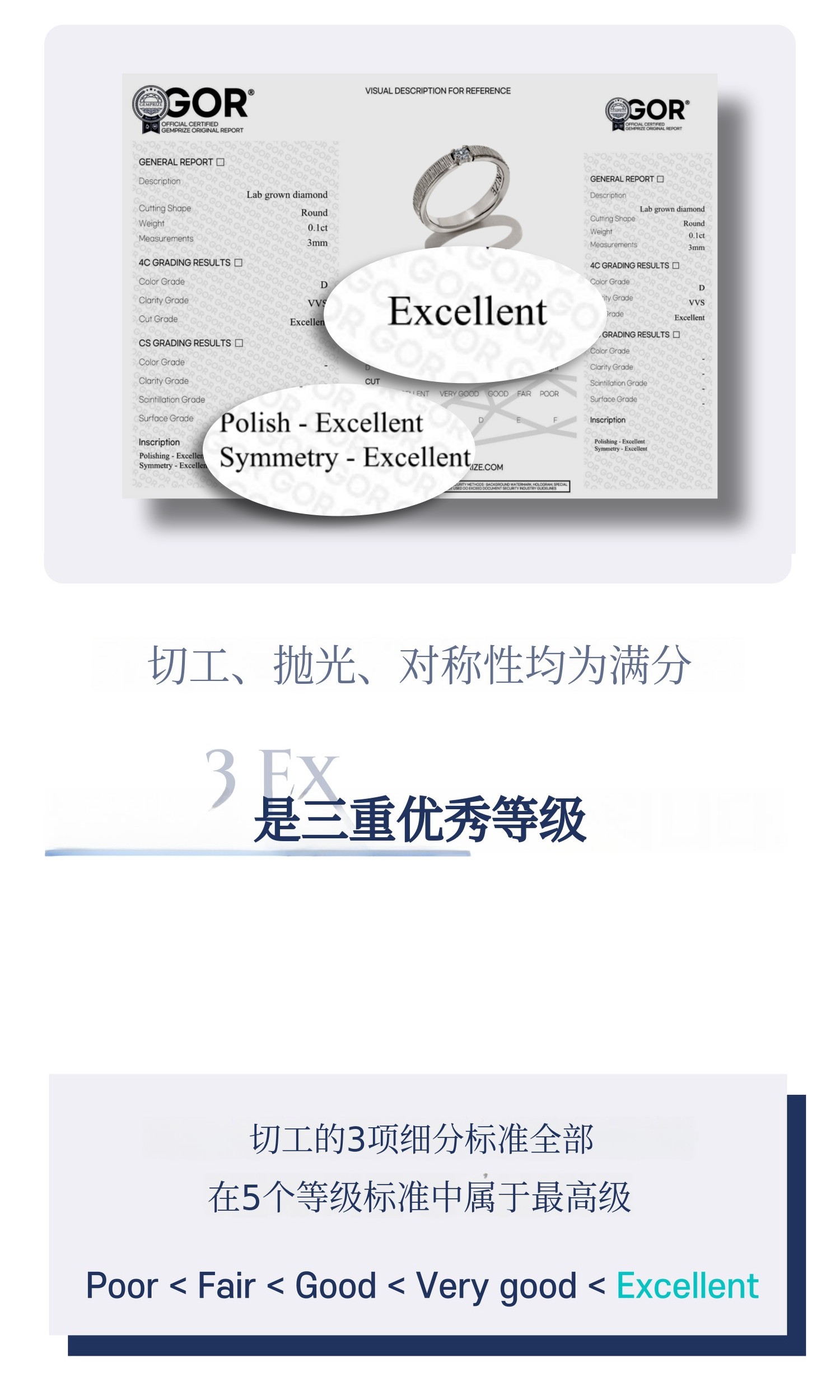 莫里亚指环采用符合4C国际鉴定标准的最高等级_