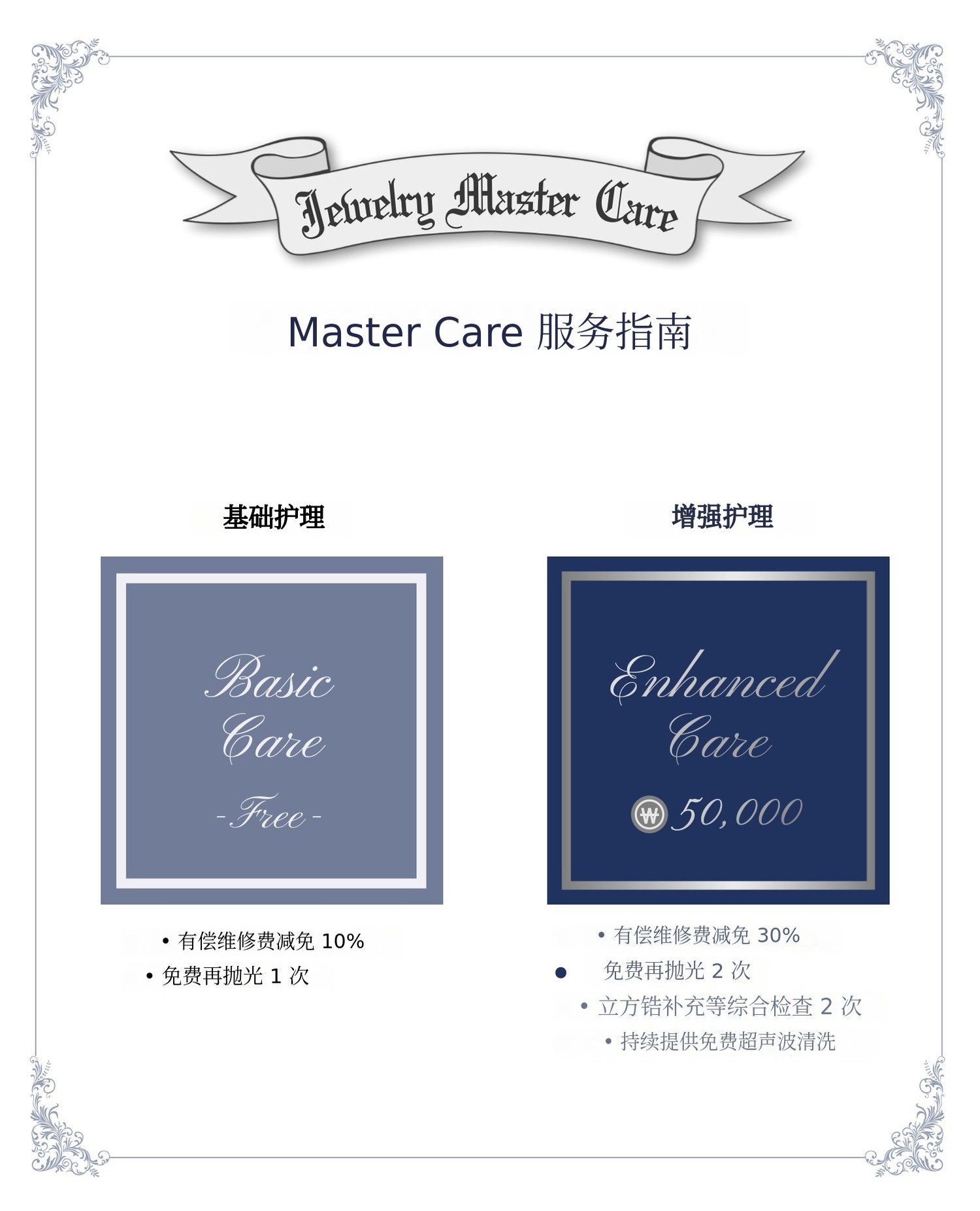 A. 我们通过专属保修服务始终以最低费用支持维修。但建议在前后约 5 个戒围内进行修理,超过该范围的修改可能会导致戒指形态变形。更改戒围需综合考虑形变、镶嵌松动、额外费用、重新电镀、重新刻印等多种风险后再进行。申请受理请通过 "Kakao 频道 点击其聊天-频道按钮即可申请。