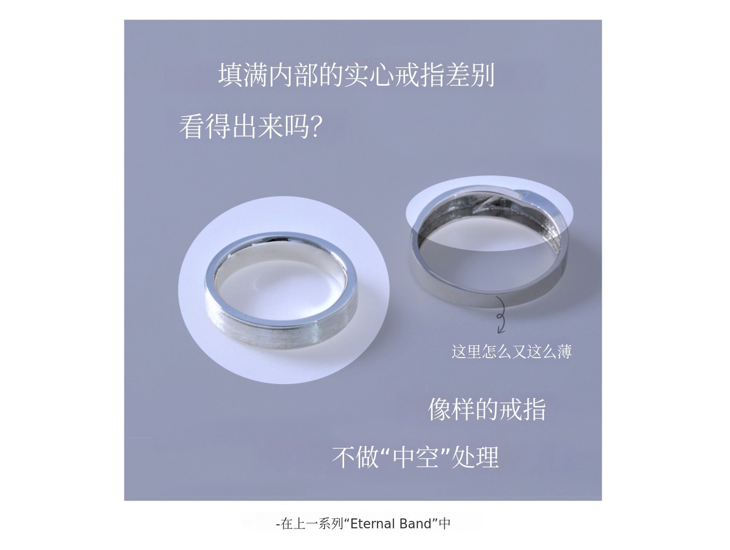 戒指内侧为实心整圈戒指,