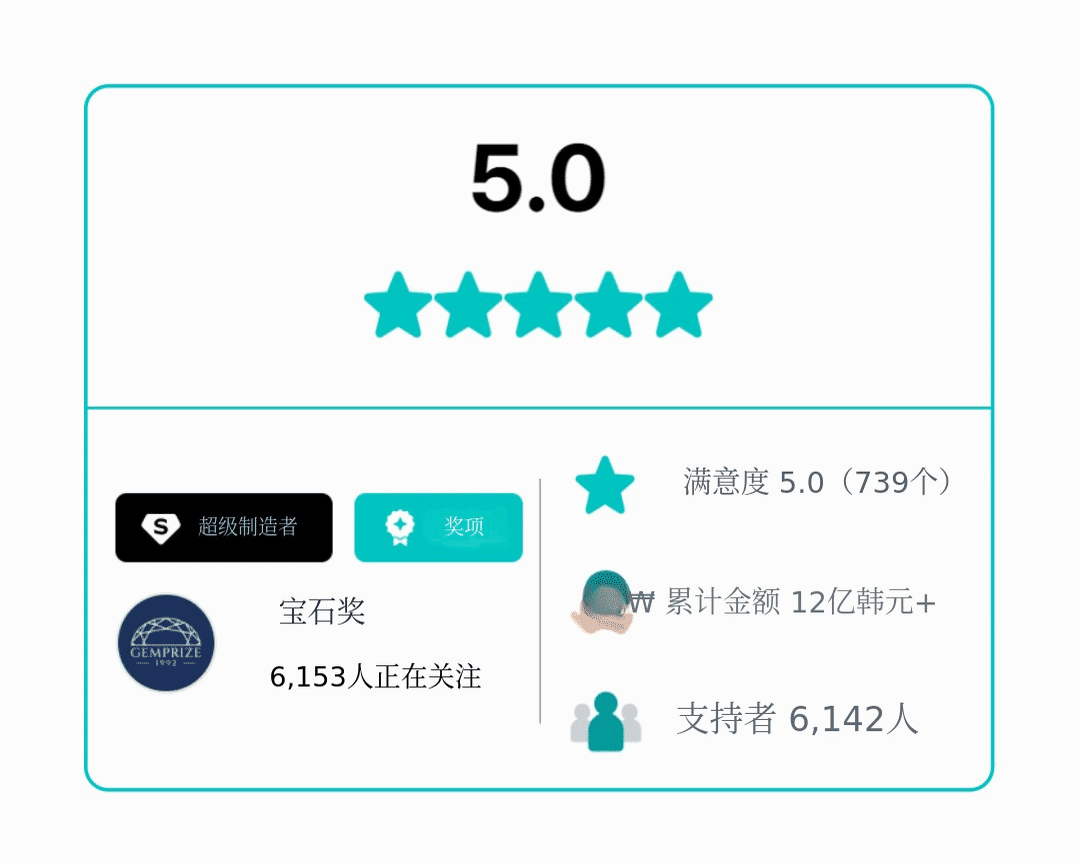 参与本次项目时价值50,000韩元的增强护理 可