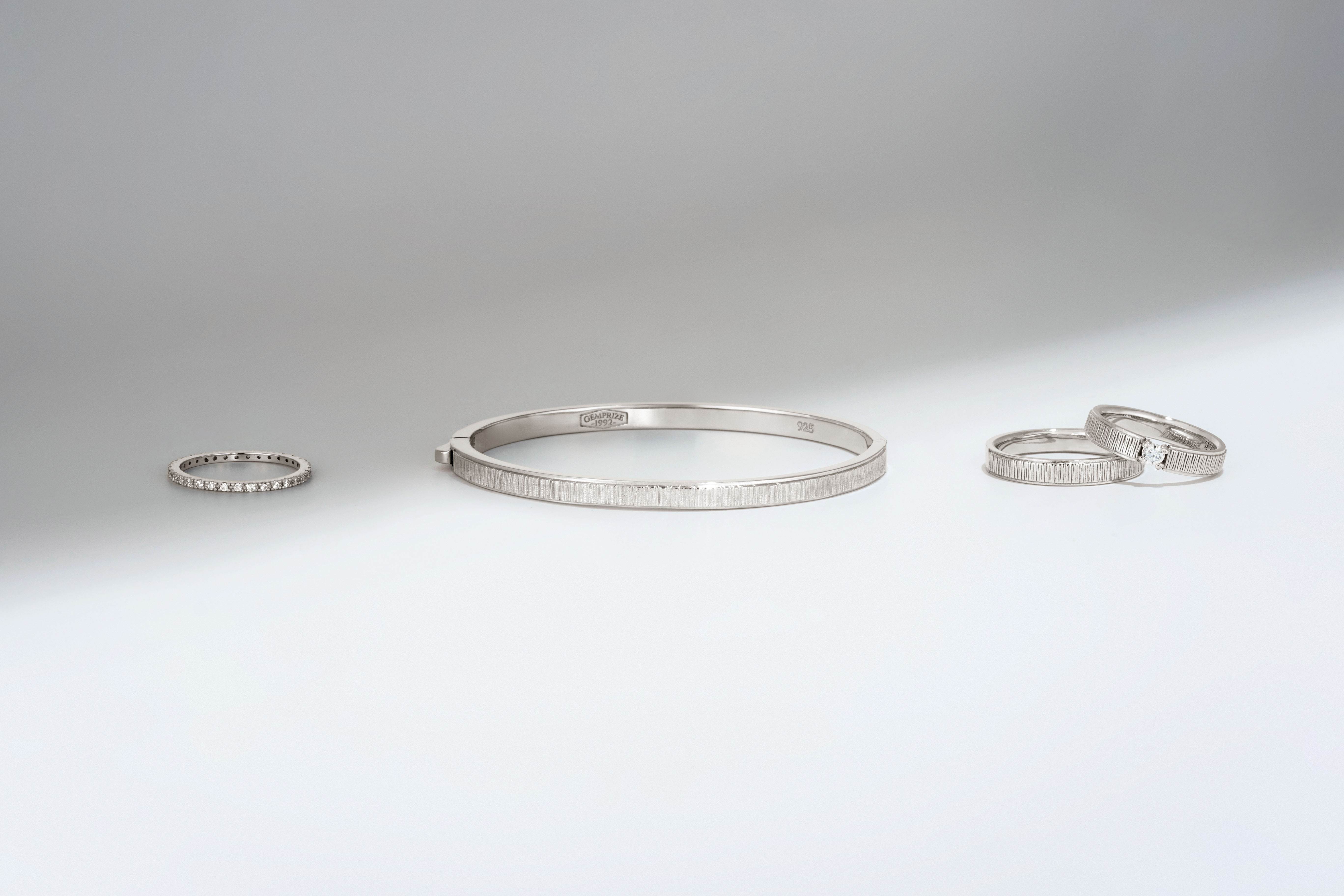 - 所有银饰均采用正银(92.5%)的“Sterling Silver”制作,并可根据选择施以GEMPRIZE原创电镀的长效5 mil铑镀层。首饰的某一部分会刻有925标记。