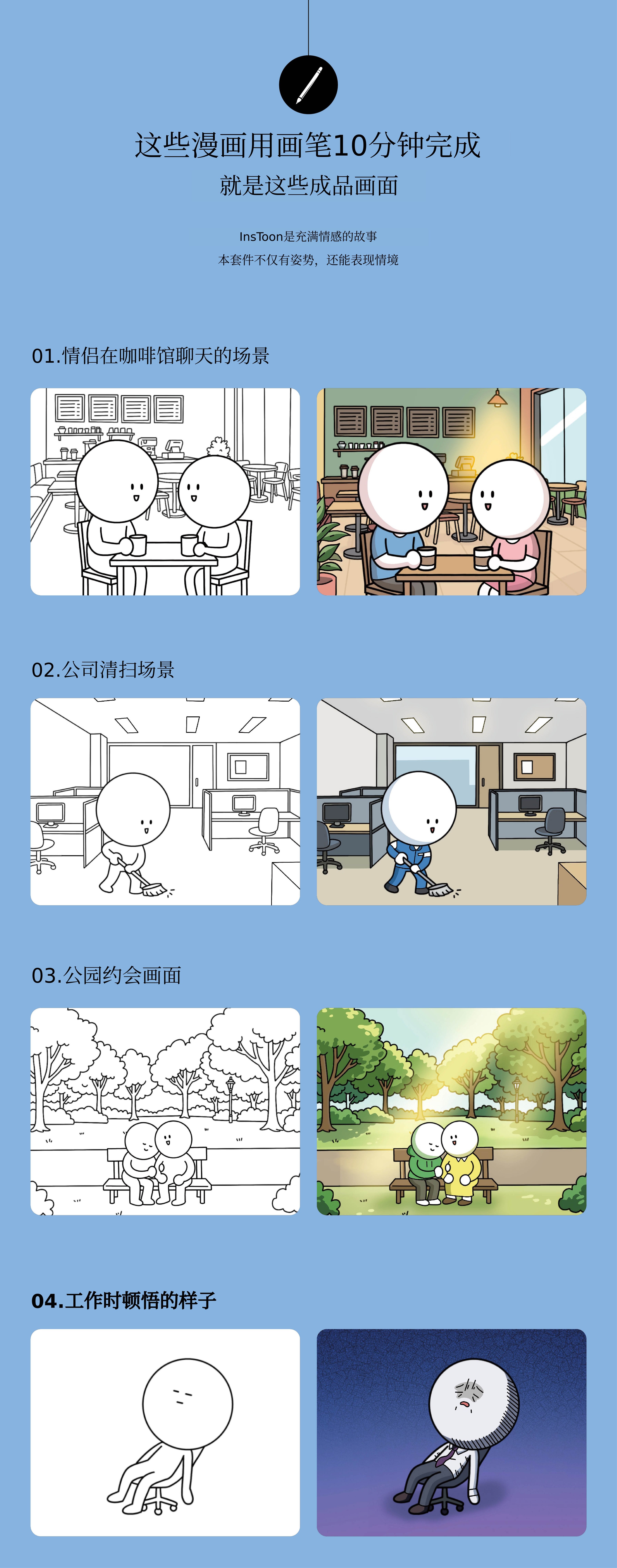 1. 🎨 Procreate专用InstaToon套件 - 包含305种数字画笔,优化漫画制作 2. ✍️ 初学者轻松上手 - 简单组装姿势和对话框工具 3. 💸 20%折扣及6个月下载 - 以优惠价提供入门套件