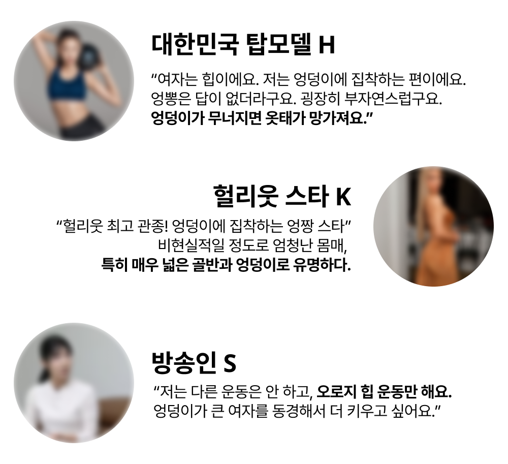 엉덩이 근육은 운동으로 키우기 어려워요.