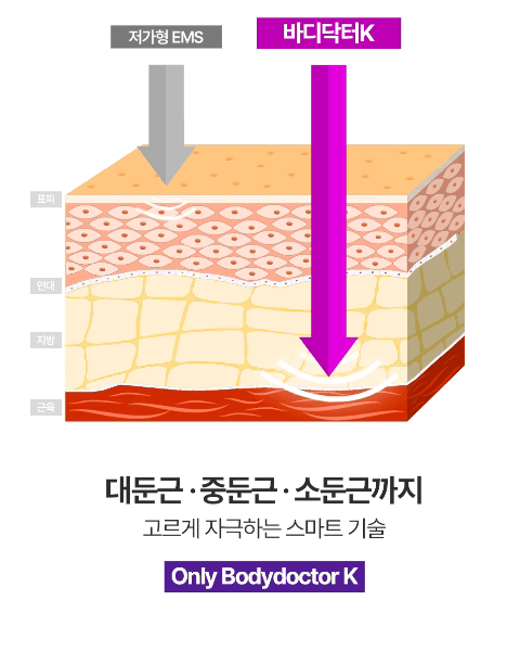 깊숙이 침투하는 바디닥터K의 독보적 EMS 기술로