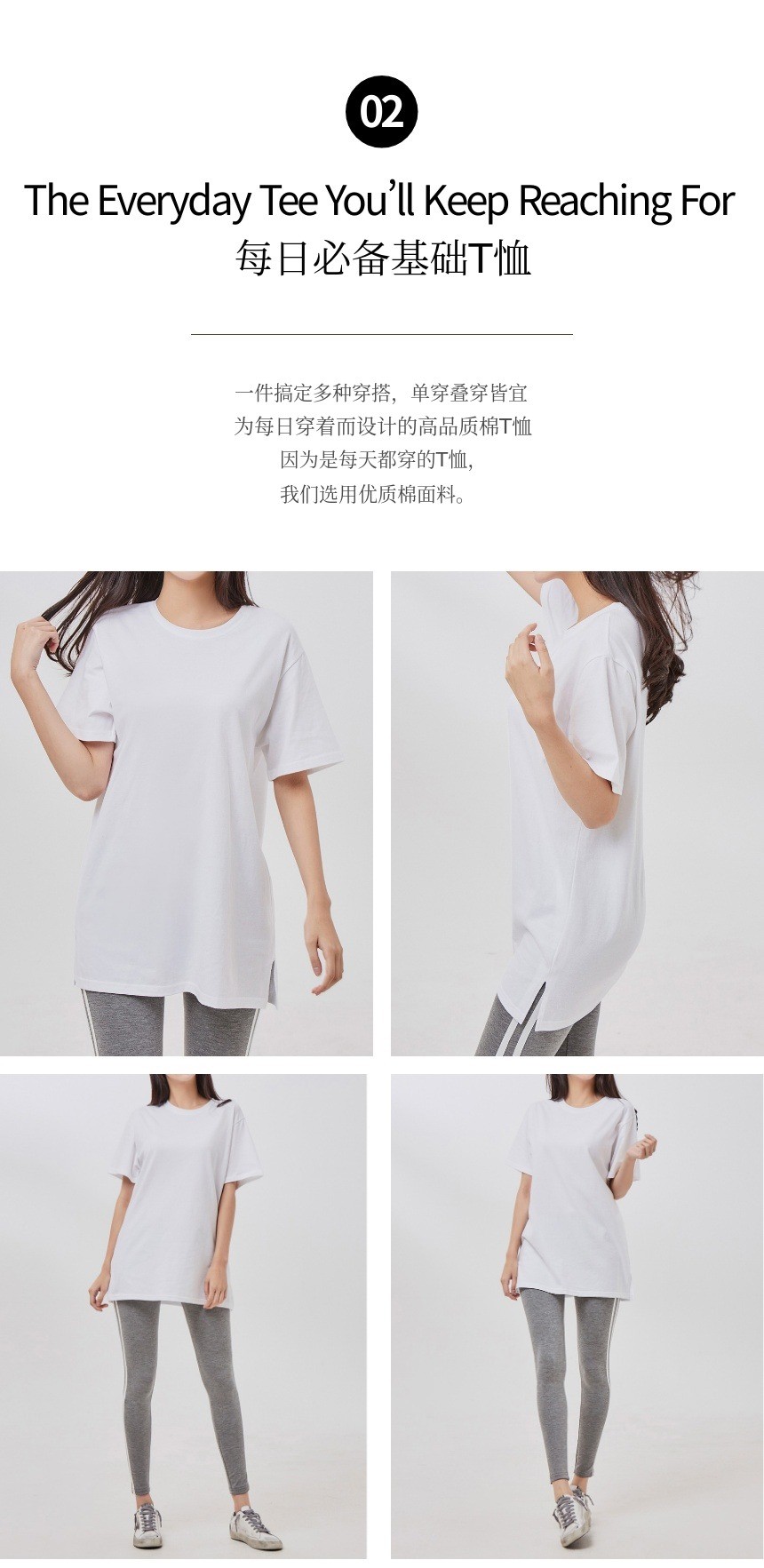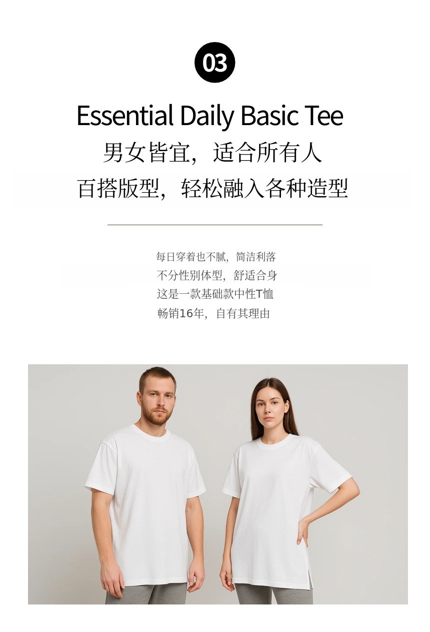 1. 👕 优质棉基础T恤 - 16年验证的畅销款,柔软耐用 2. ✨ 单穿与叠穿完美贴合 - 侧开衩与弹性领口兼顾舒适与风格 3. 🎁 WADIZ限定特价 - D2C模式无流通加价,价格合理