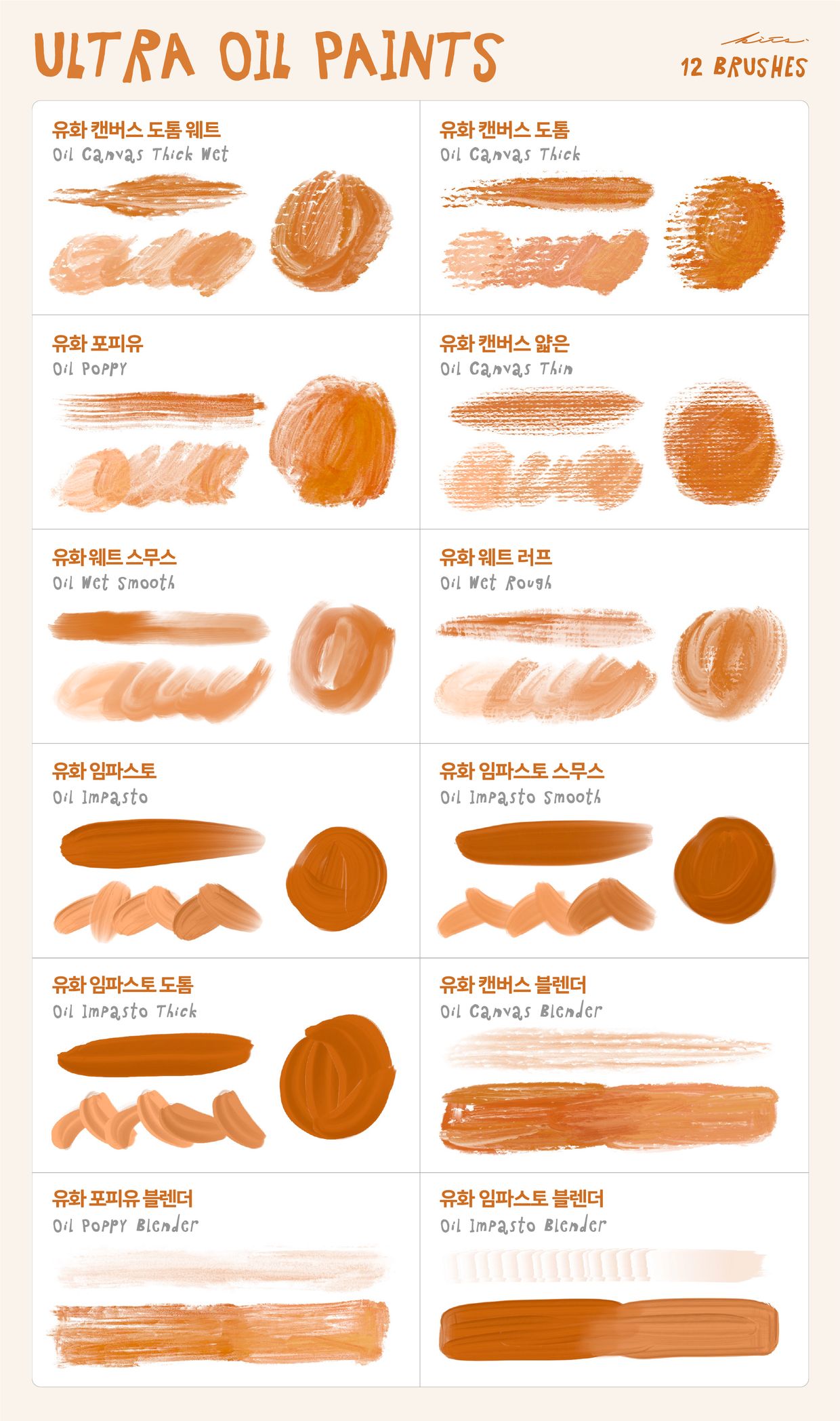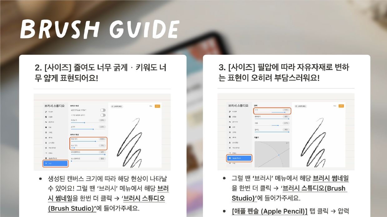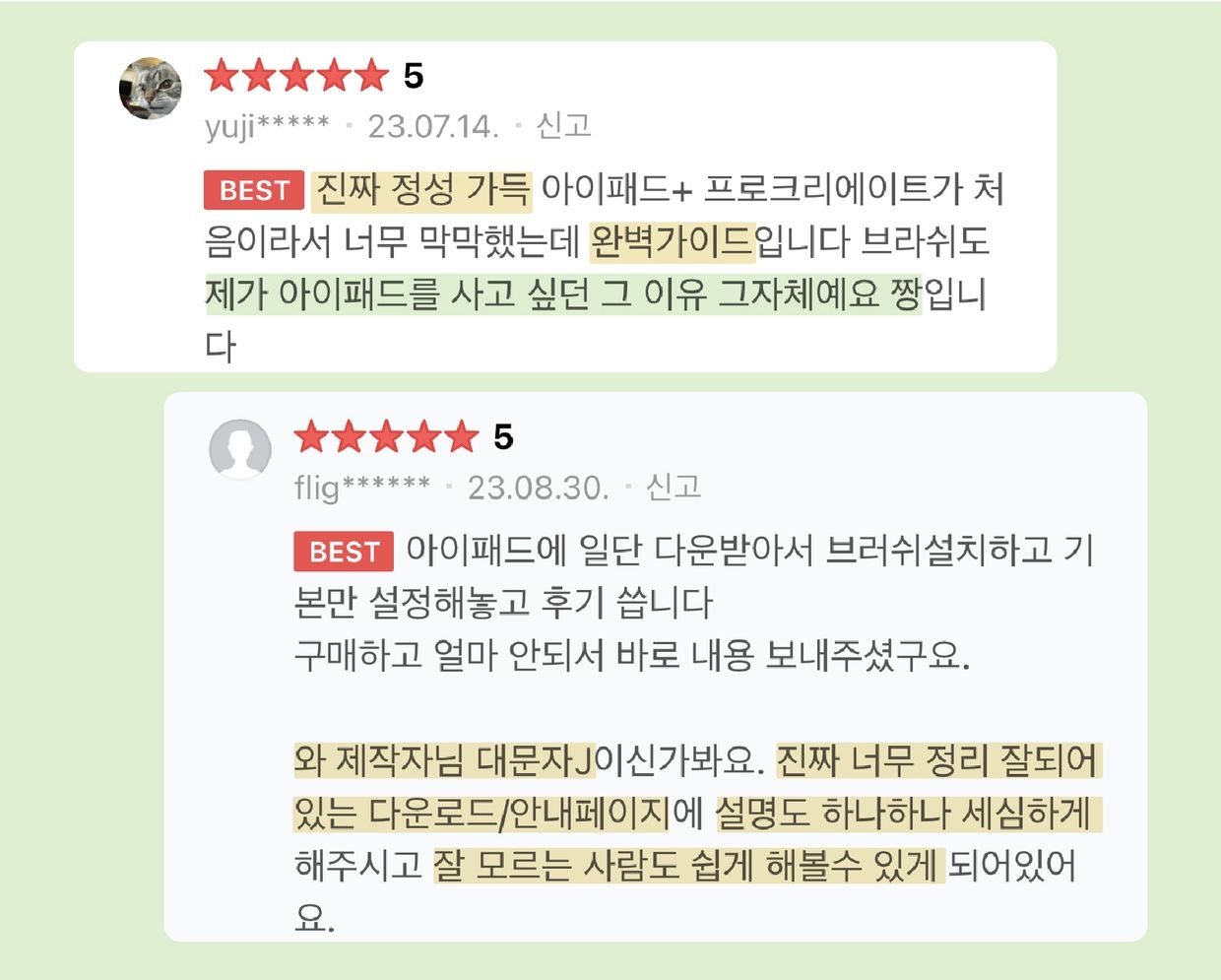 제공해드리는 브러시 파일은 아이패드 프로크리에이트 앱 5X 버전 이상에서 최적화로 활용 가능합니다. 따라서 앱 업데이트를 권장드리며, 전달받으신 후 호환이 되지 않는 경우에는 메시지로 문의를 남겨주세요!