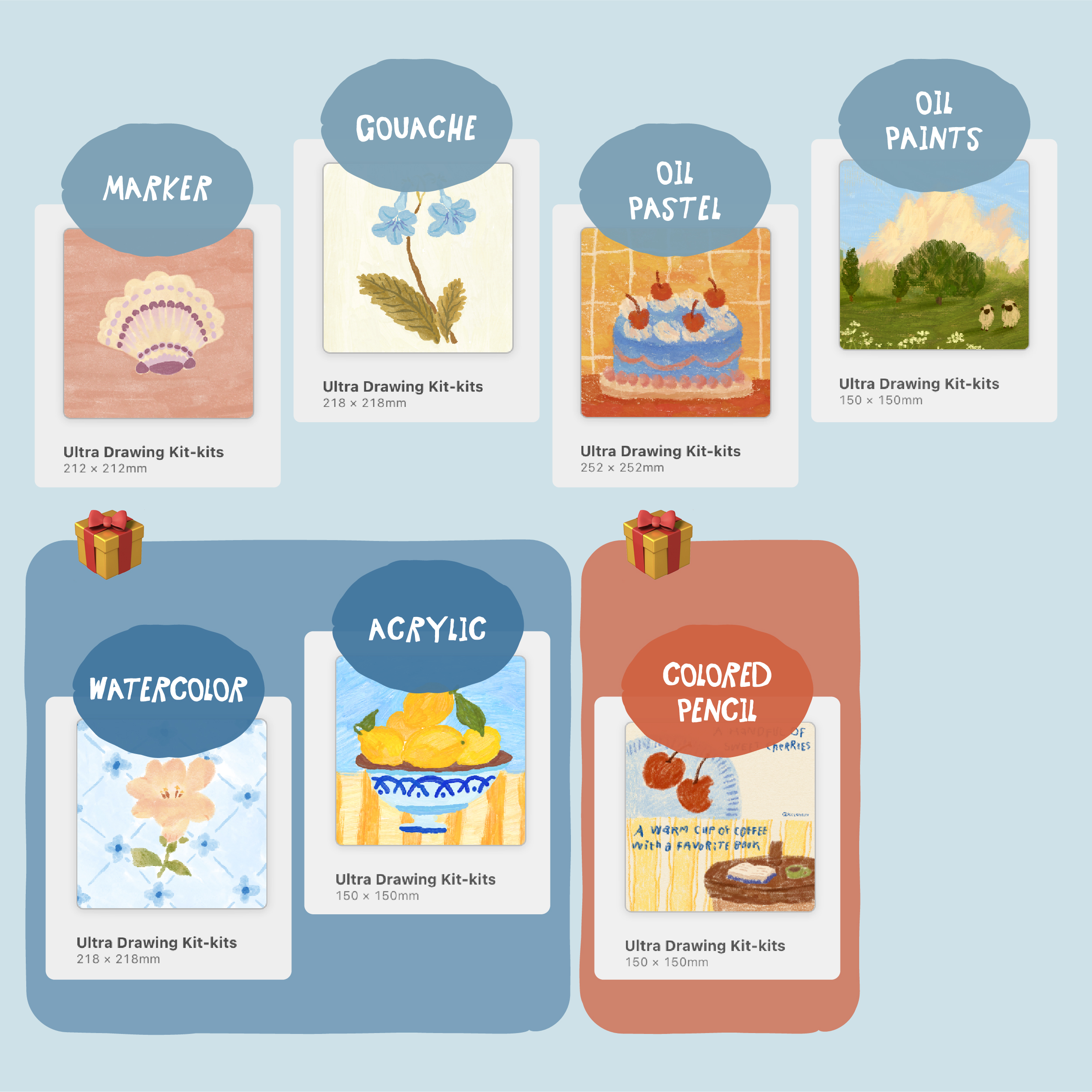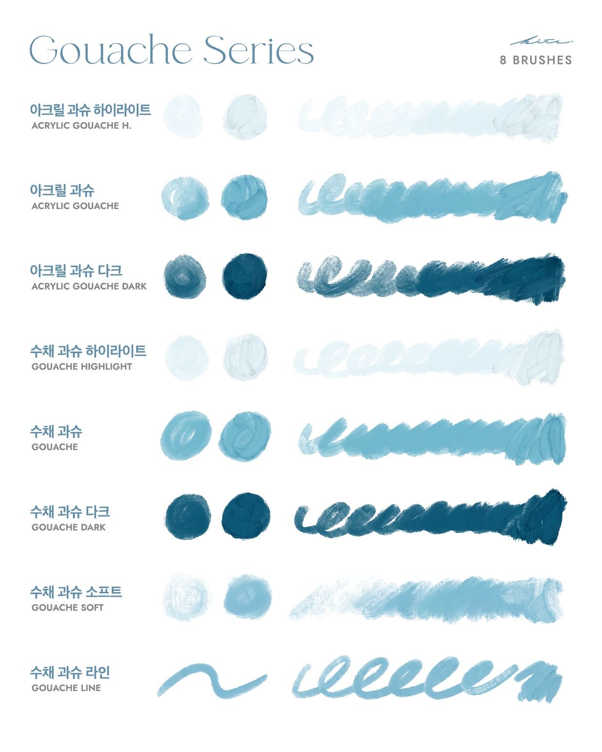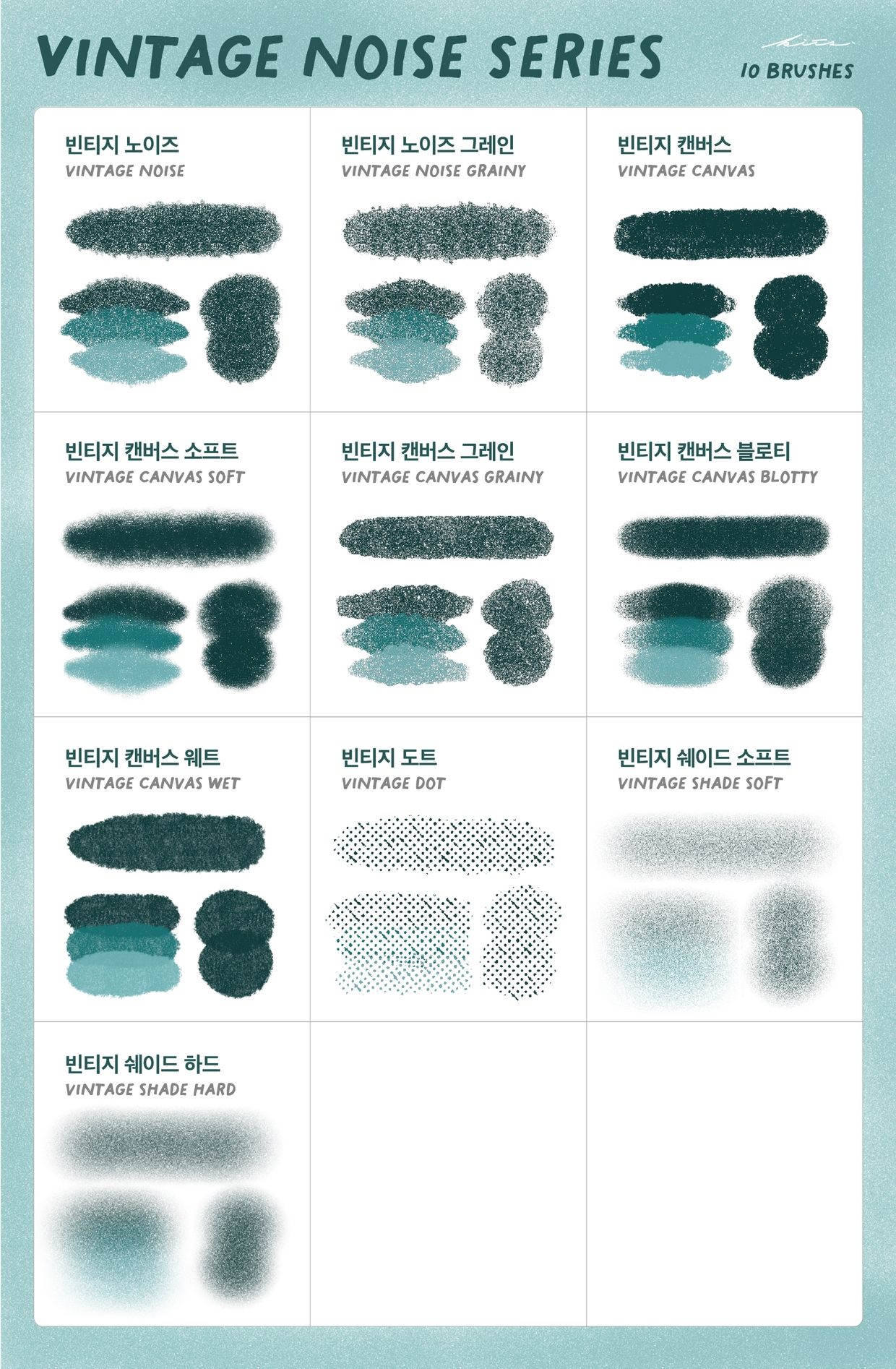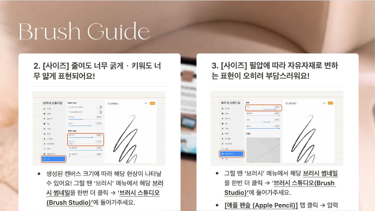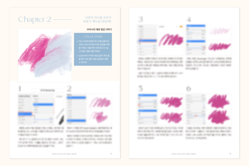 키츠 브러시는 지난 클래스101 TOP20 선정 이력의 아이패드 드로잉 '아날로그 텍스처' 시리즈 클래스들을 통해 2020년 1월부터 과슈, 오일 파스텔, 수채화, 색연필 등의 재료 및 종이 텍스처가 담긴 커스텀 브러시 세트를 제공드리며 시작되었습니다.