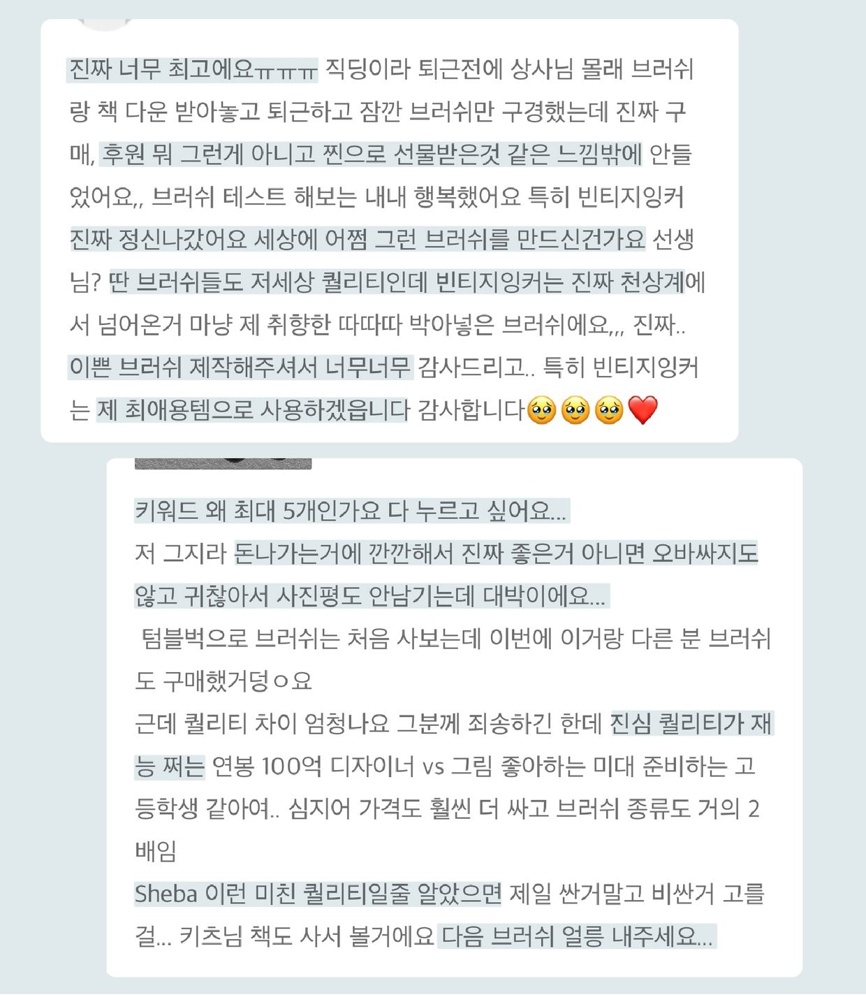 커스텀 브러시 세트를 제공드리며 시작되었습니다.
