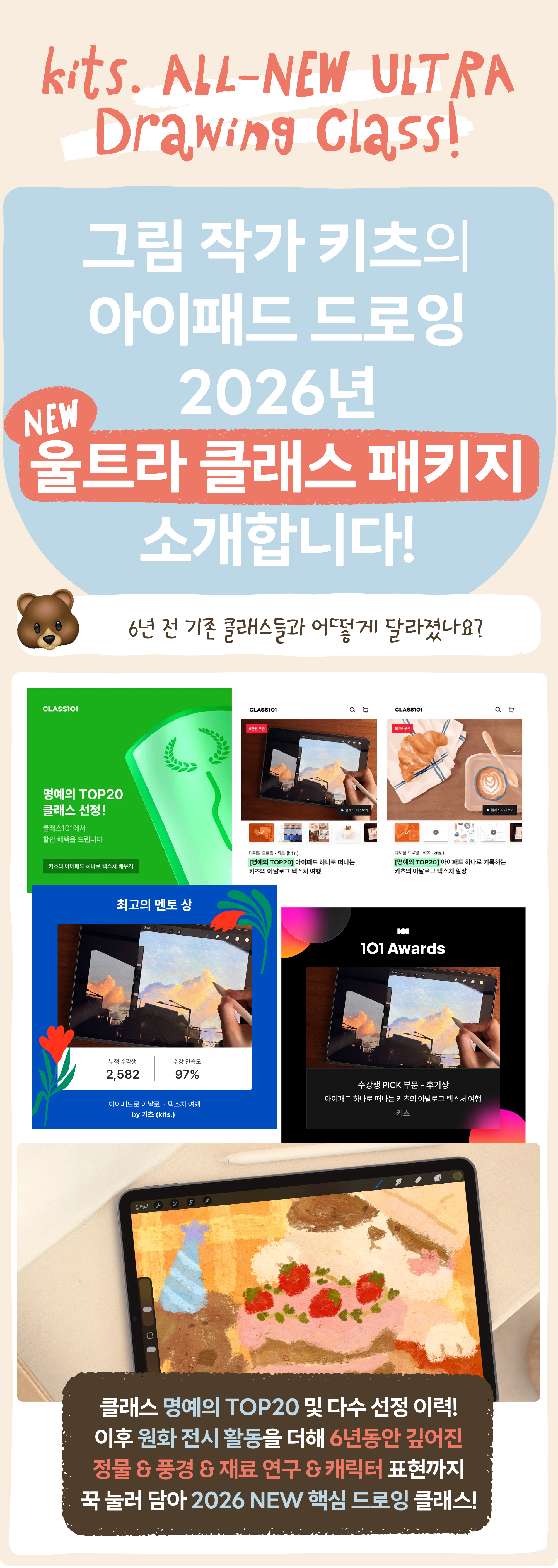 2020.11 | 클래스101, 2차 클래스 '아이패드 하나로 기록하는 키츠의 아날로그 텍스처 일상' 런칭