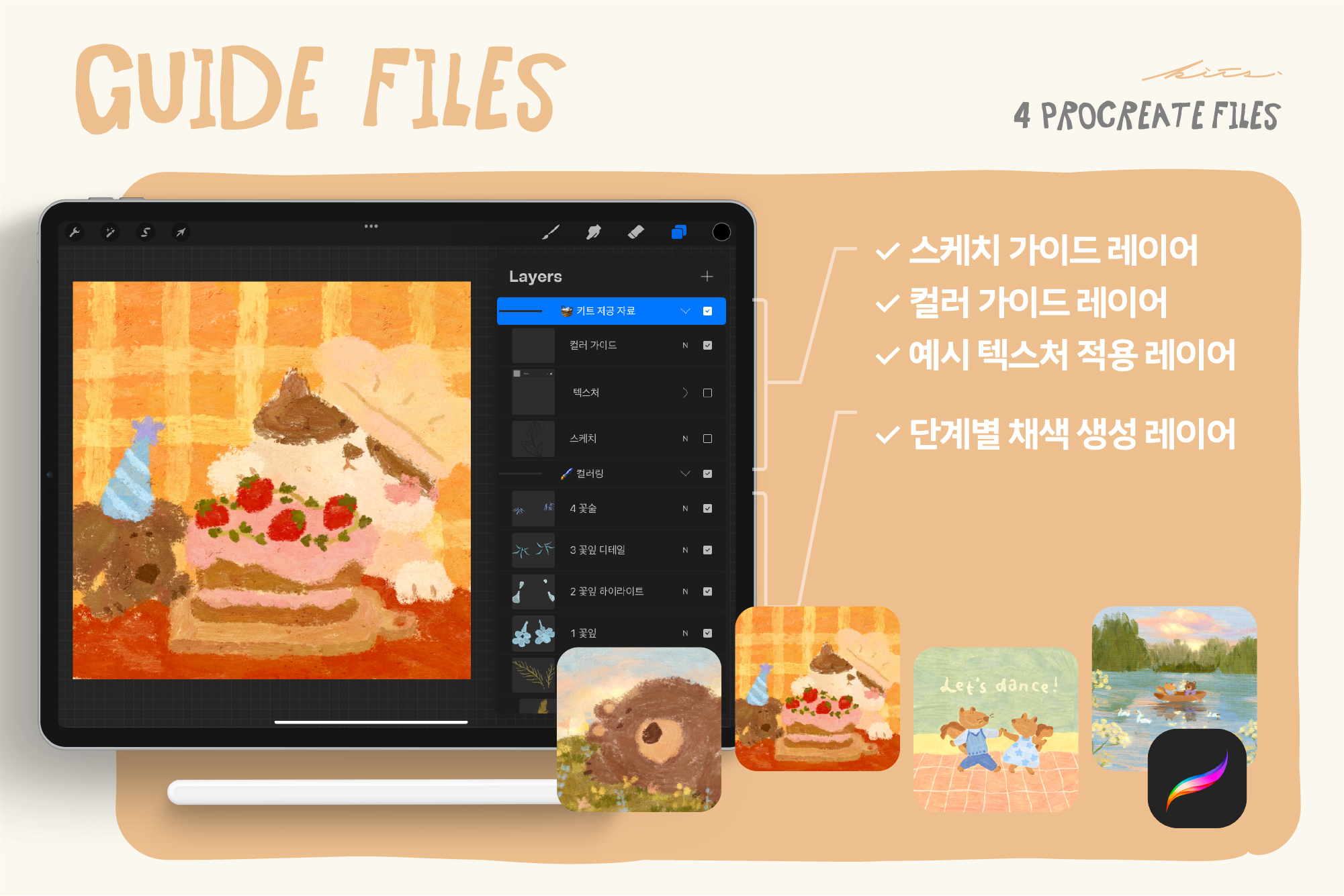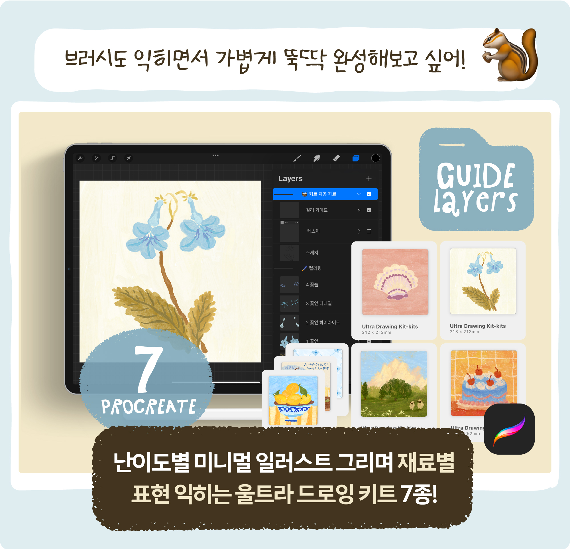 - 드로잉 키트: .procreate (프로크리에이트 앱 호환, 가이드 자료 역할의 레이어 포함)