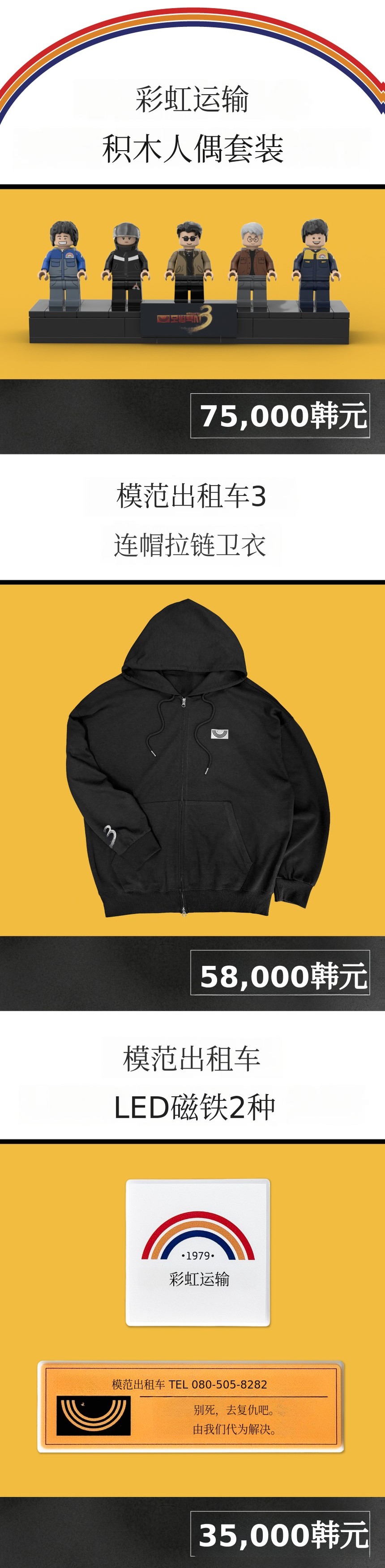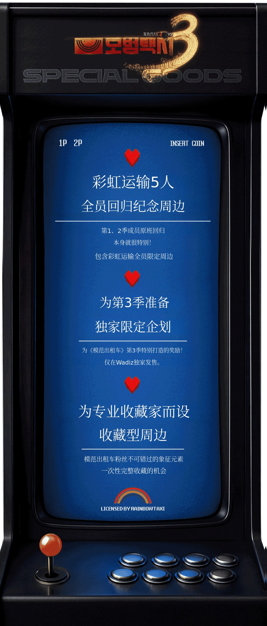 1. 🚕 官方模范出租车3周边套装 - 包含彩虹运输积木人偶及多种粉丝商品 2. 🎁 限量版粉丝周边 - Wadiz独家发售,纪念第三季全员回归