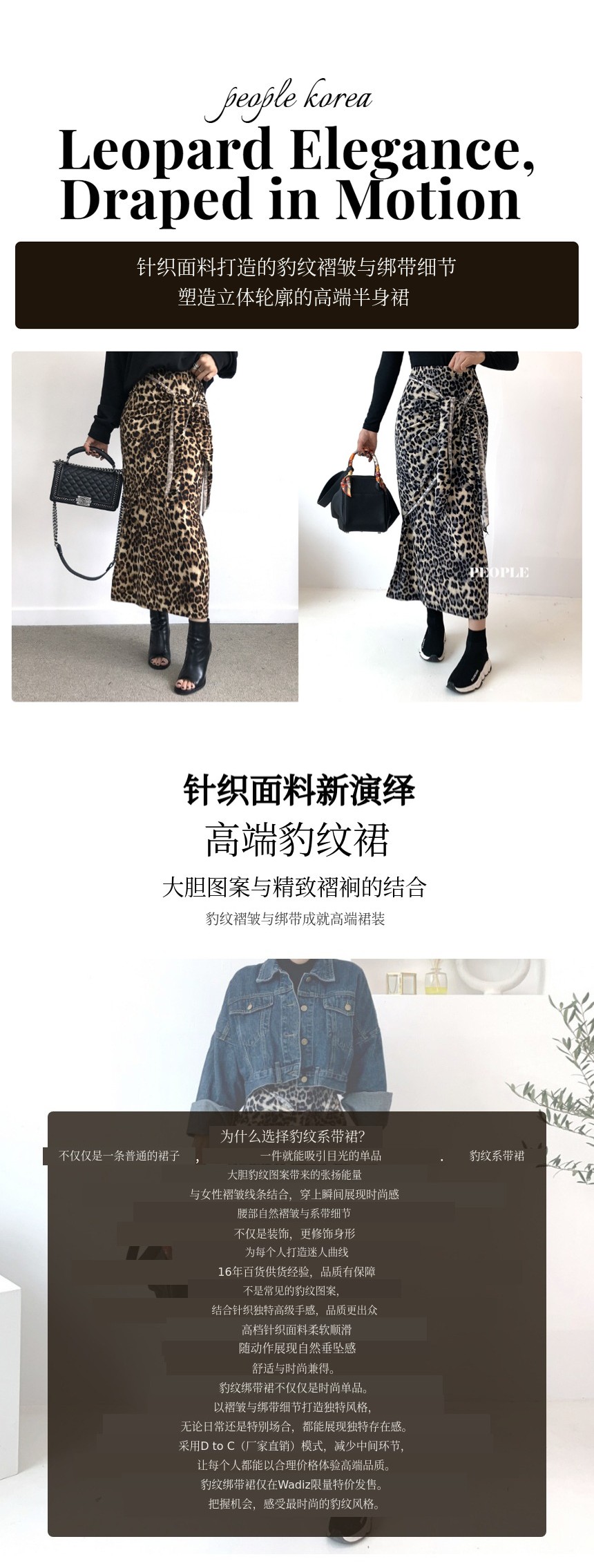 1. 👗 高端针织豹纹裙 - 优质针织与豹纹图案的时尚结合 2. ✨ 束腰皱褶细节 - 塑造立体轮廓,舒适贴合身形 3. 🎁 WADIZ限定特价 - 制造商直销,享受合理价格的高端品质