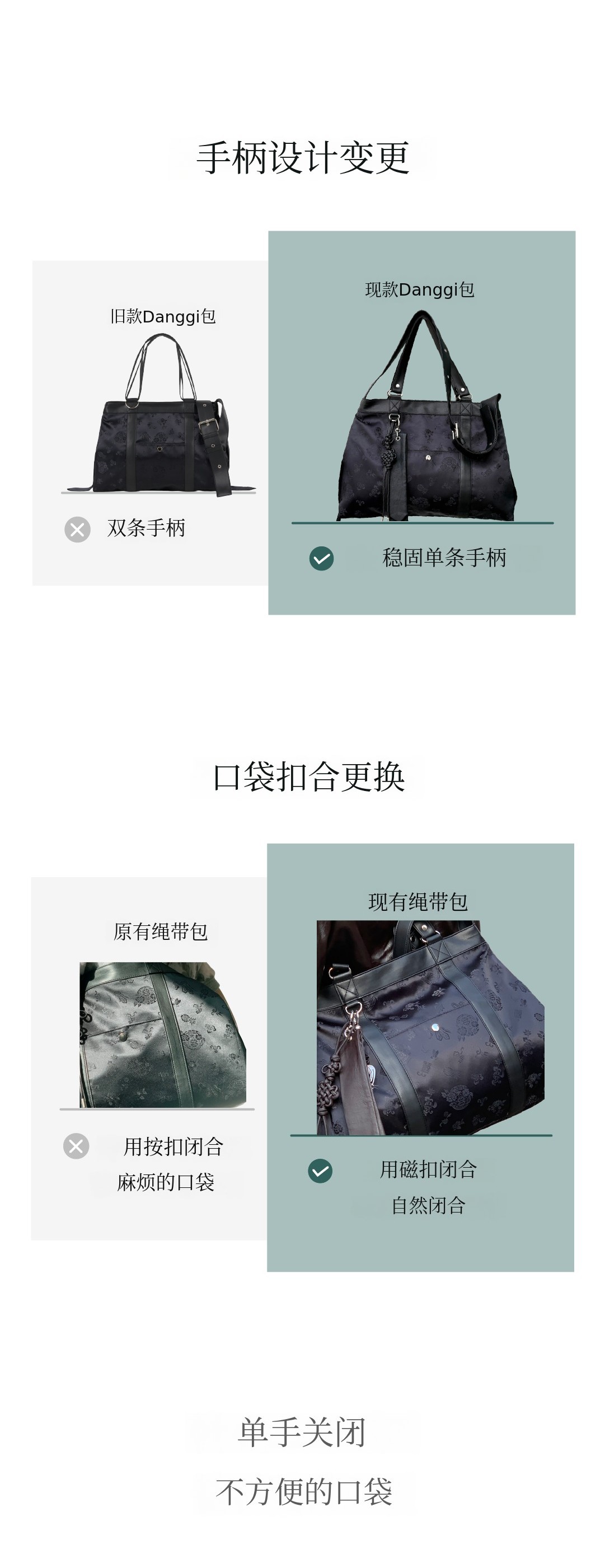 以前可能会觉得有点紧,这次改进后,与댕기백一起使用会更加顺畅。