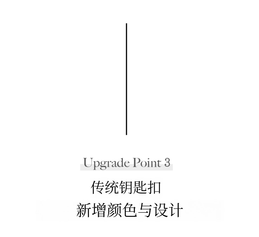 这次的初演钥匙扣为了让您在使用丹基包钥匙扣环时更加方便,将钥匙扣环的尺寸比以前做得更宽松了一些。