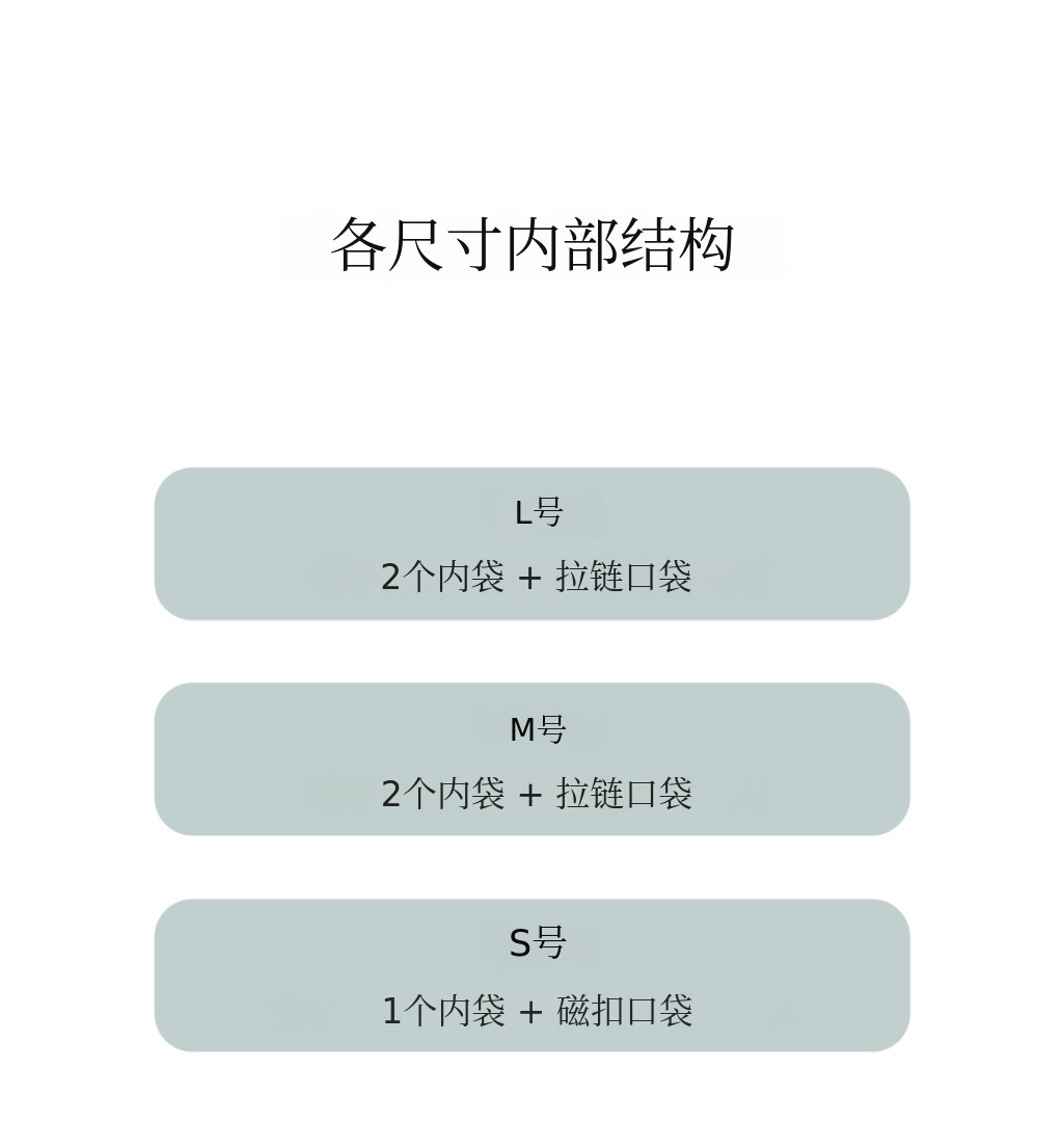 - 长期存放时,请在包内填充填充物(如纸张、布料等),以防止变形。