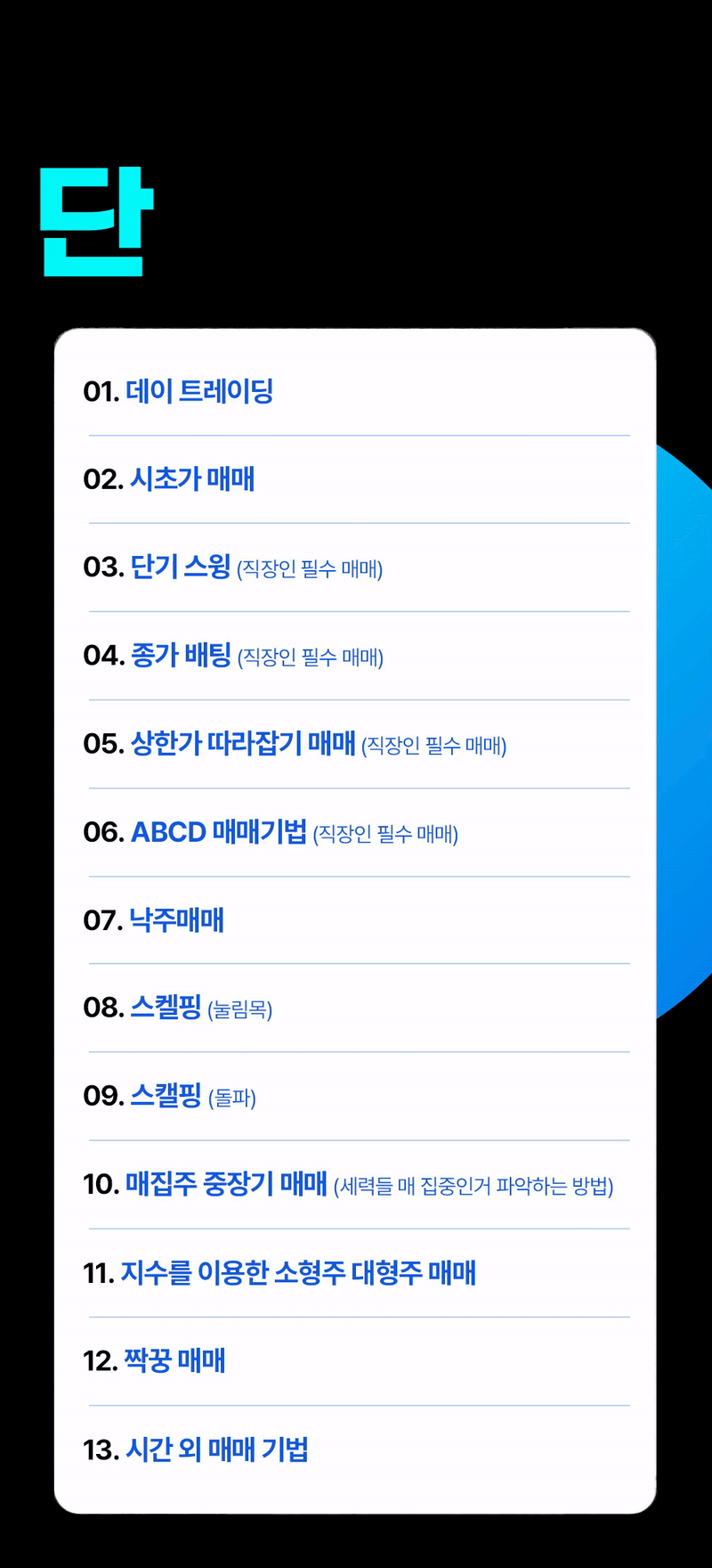 국내 톱 트레이더가 되어 더 많은 제자를 양성하는 것.