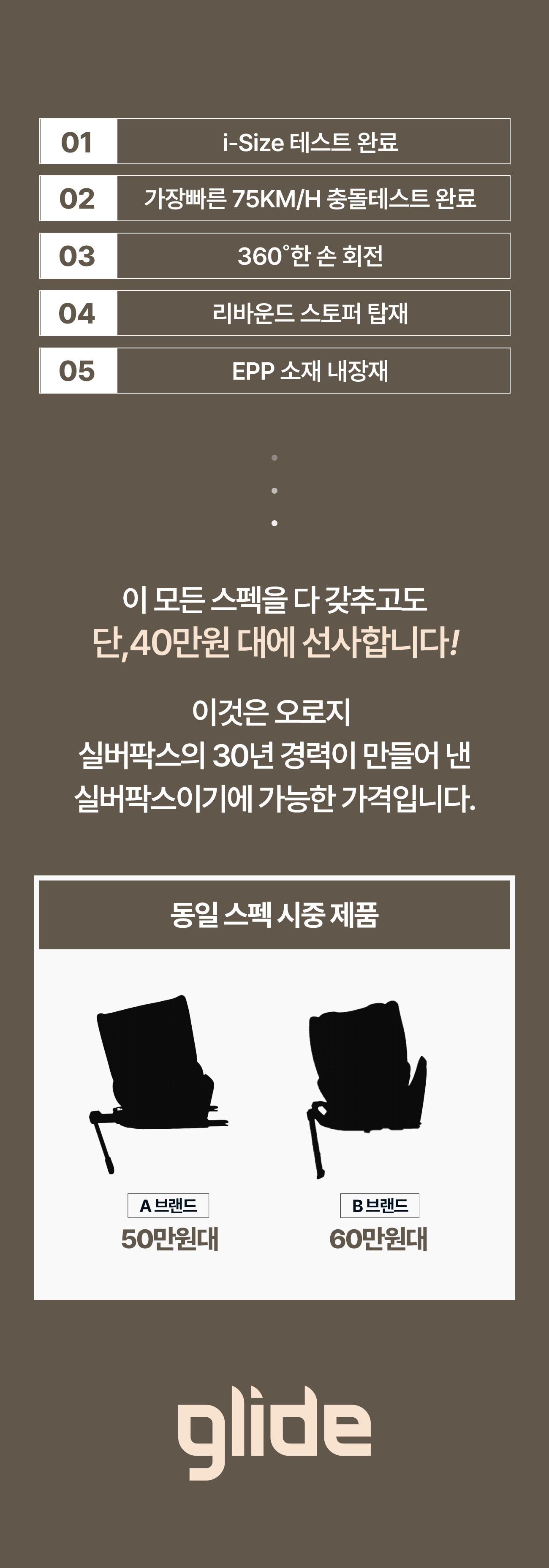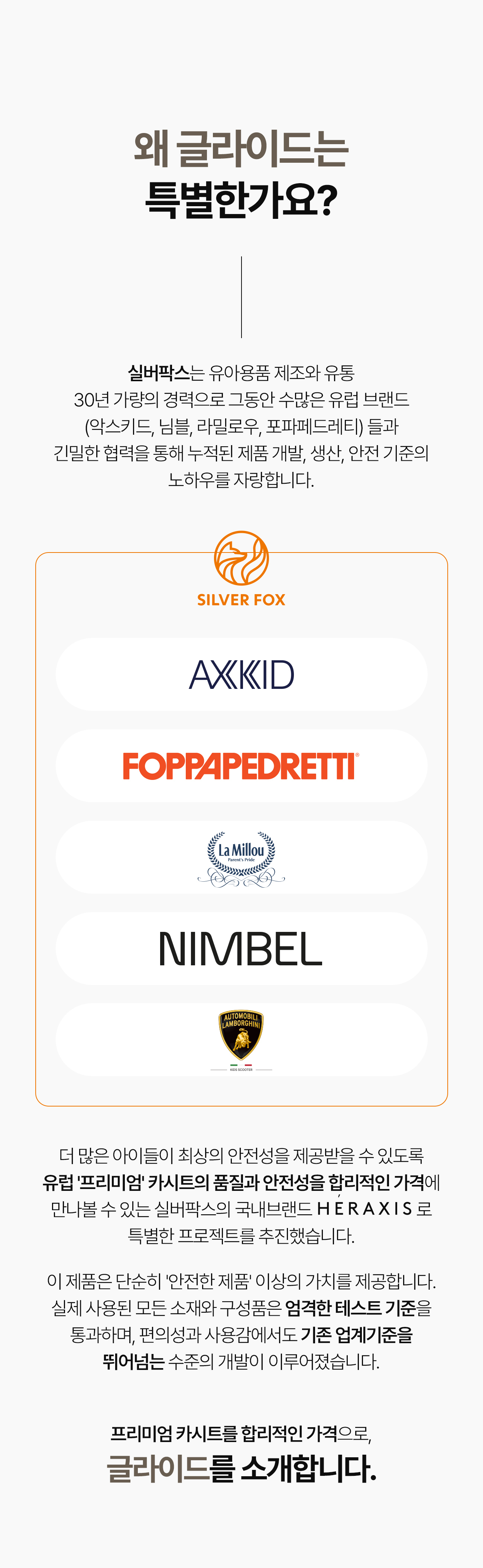 이번에 선보이는 글라이드 카시트는 실버팍스가 아이들의 안전을 위해 새롭게 개발한 제품입니다.