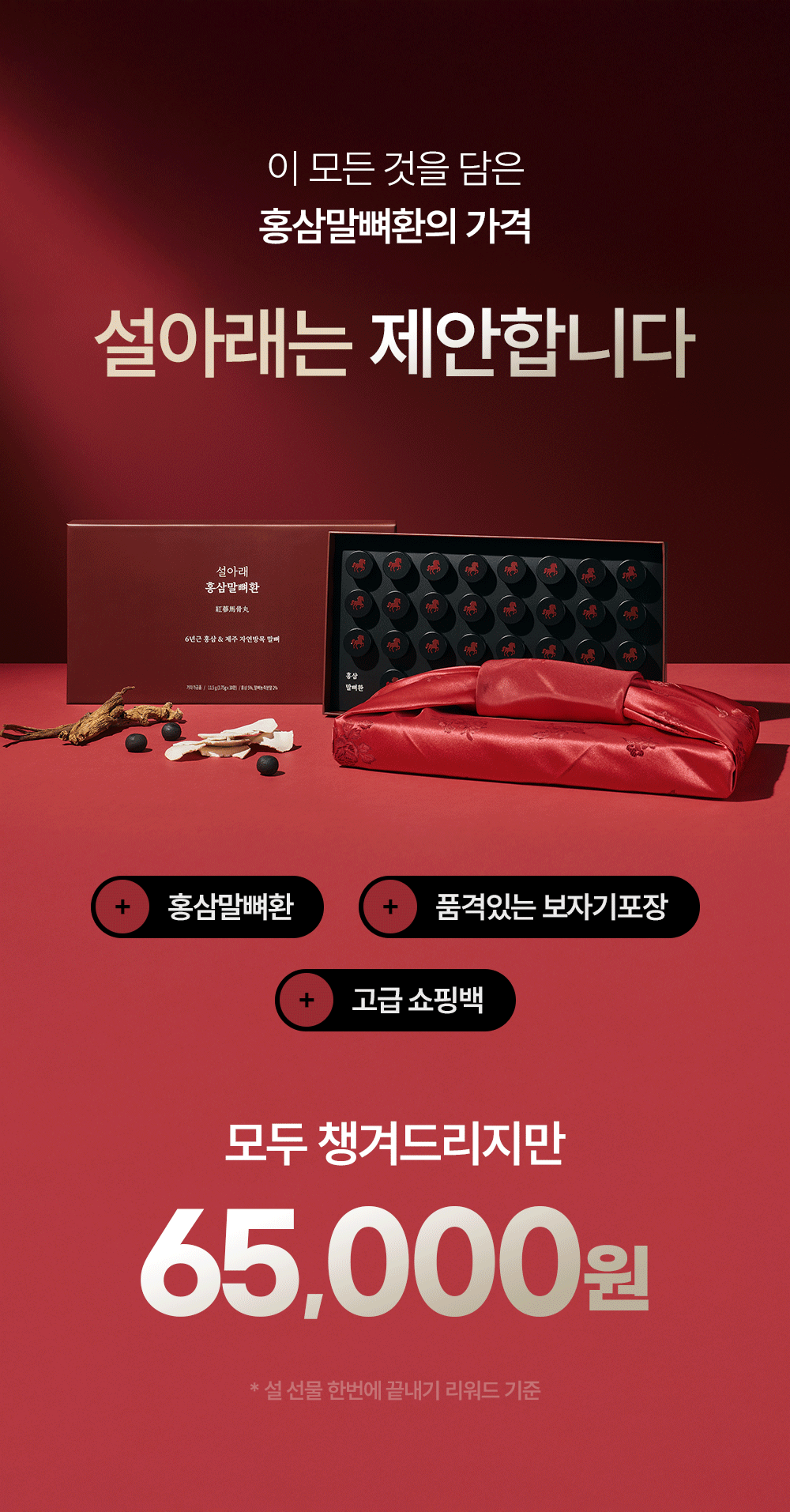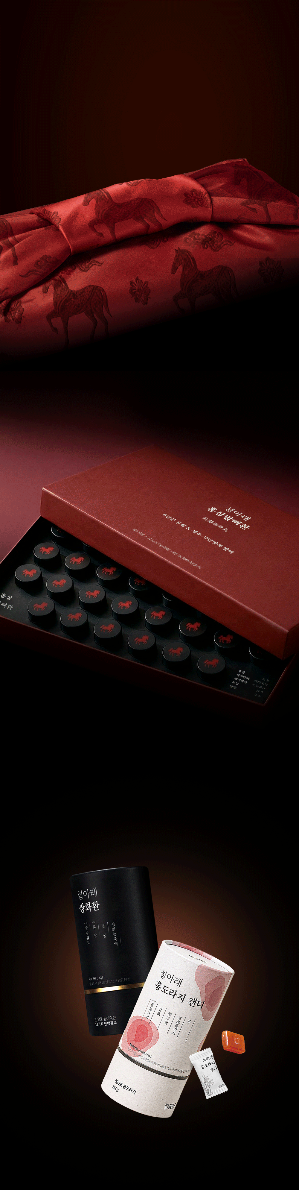 1. 🐎 红参马骨健康食品 - 采用6年根红参与济州自然放牧马骨,增强活力与关节健康 2. 🎁 限量礼品包装 - 含红马包袱布和高档购物袋,赠品丰富