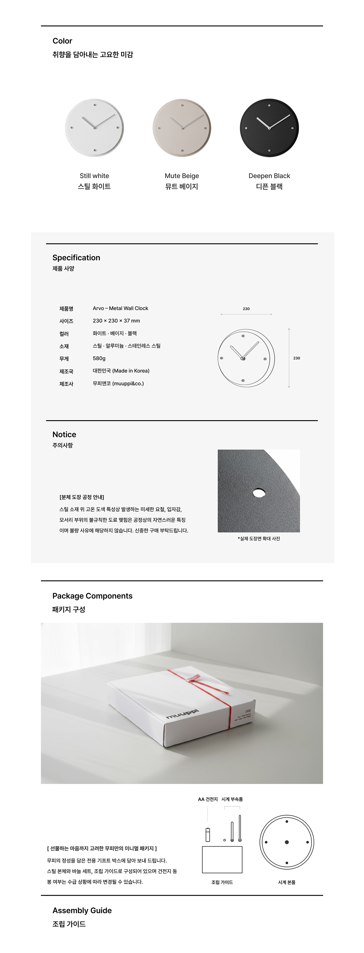 [静音金属挂钟] 消除视觉噪音的艺术挂钟 Arvo