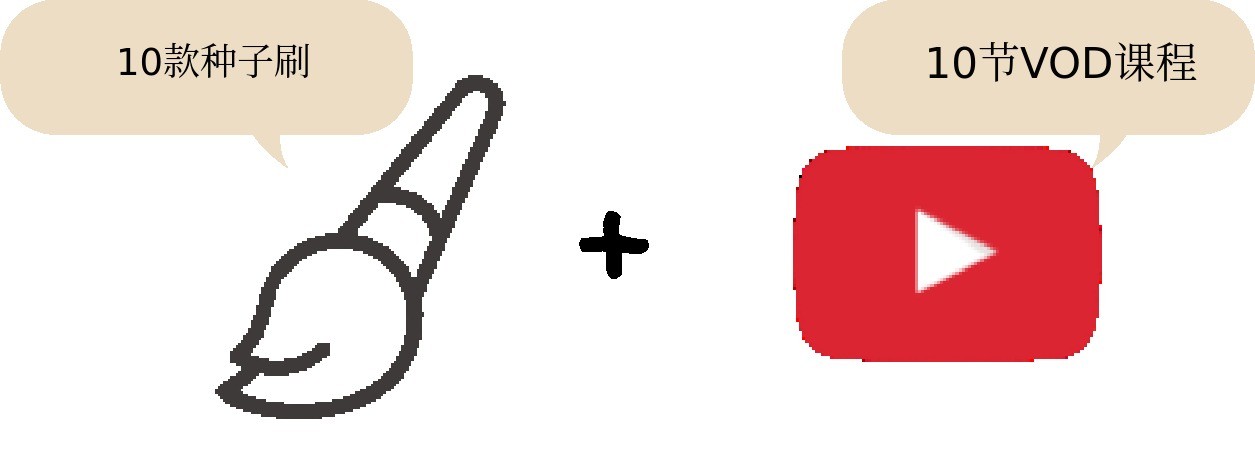 +<仅VOD讲座套餐> 中不包含画笔。这是为上次众筹中只购买画笔的支持者准备的回馈。(包含10种种子画笔)