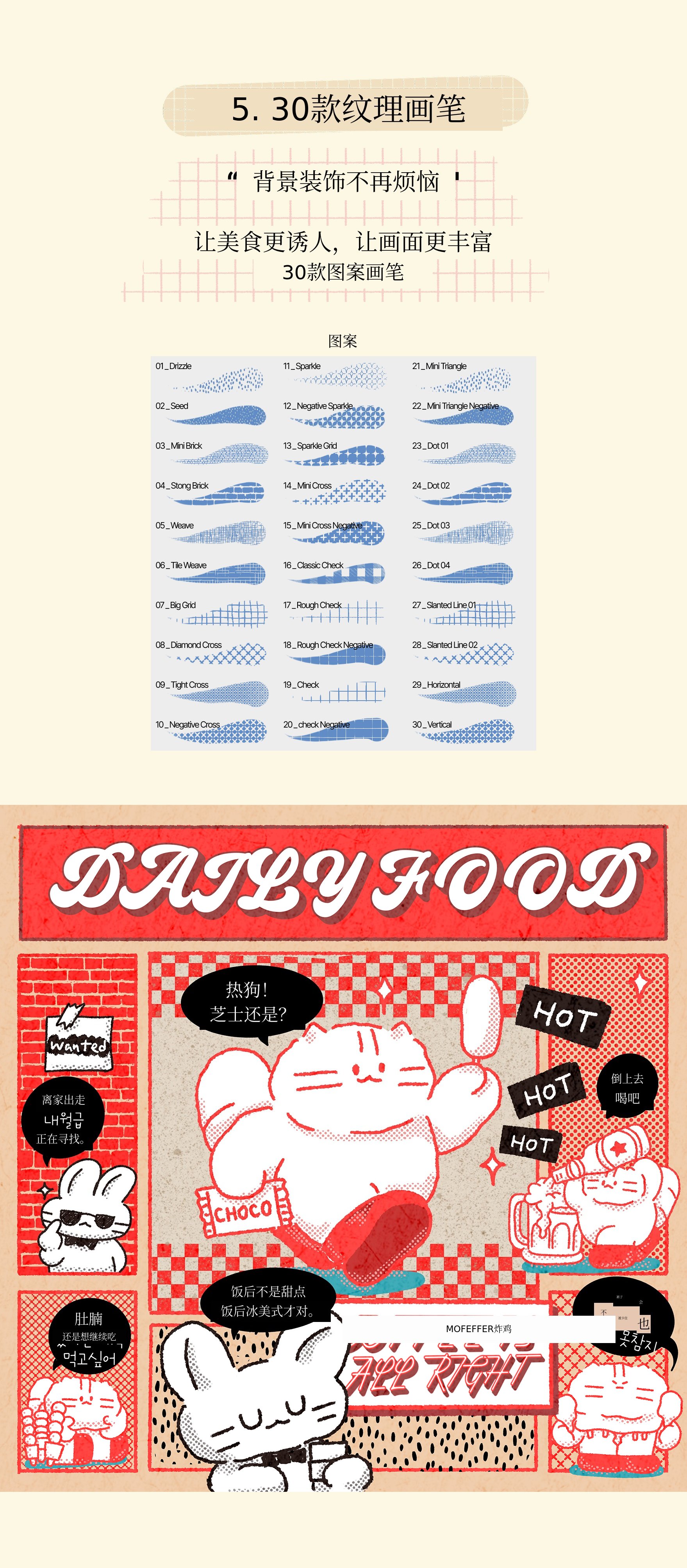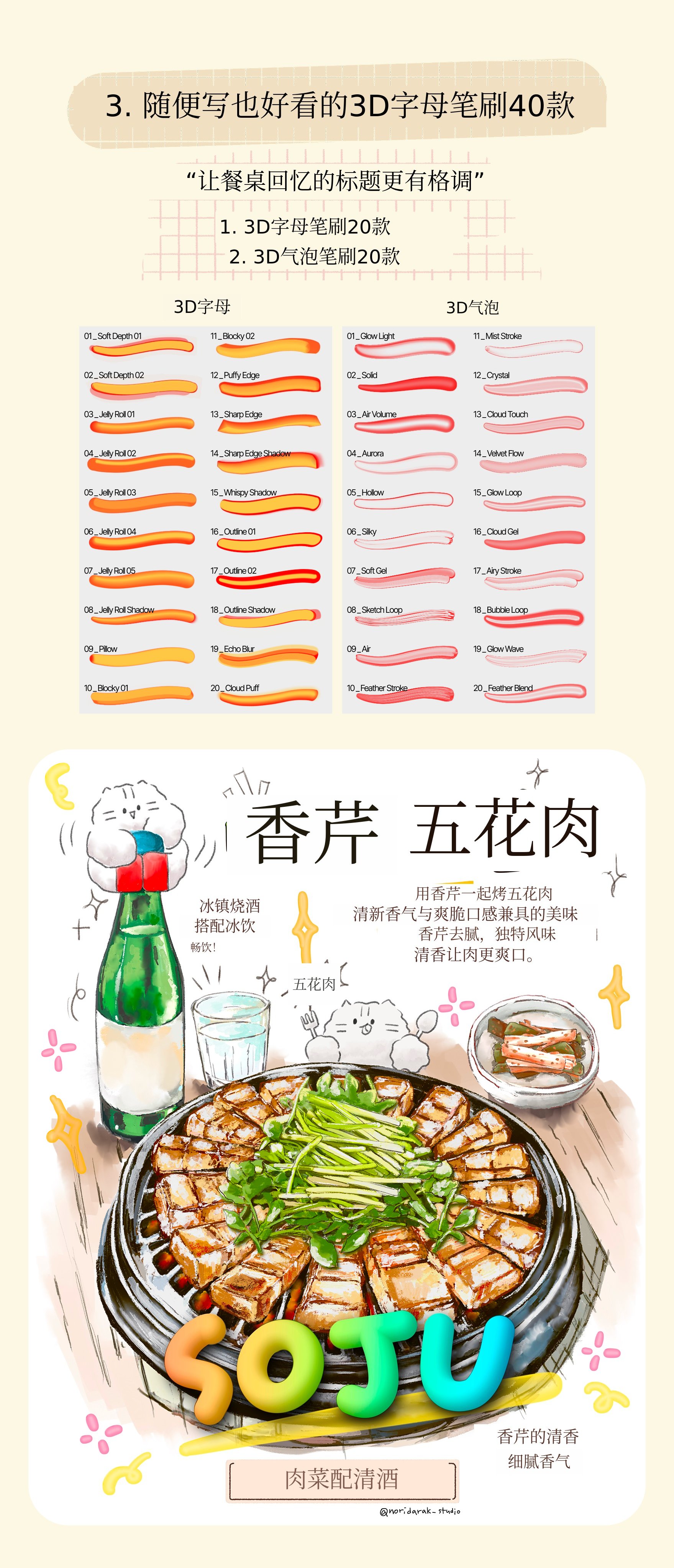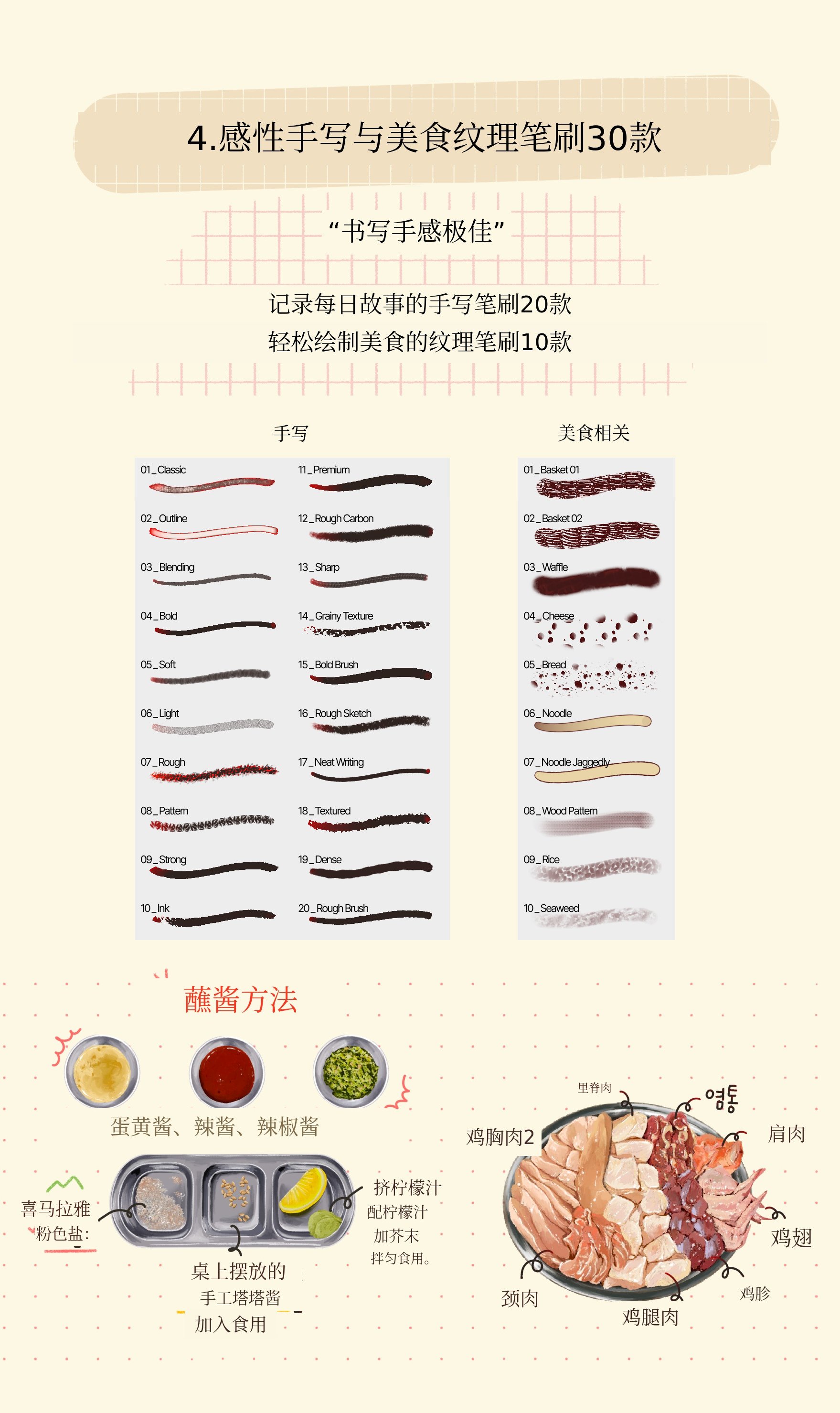 - 扩展体现韩国美食独特质感和特性的画笔阵容