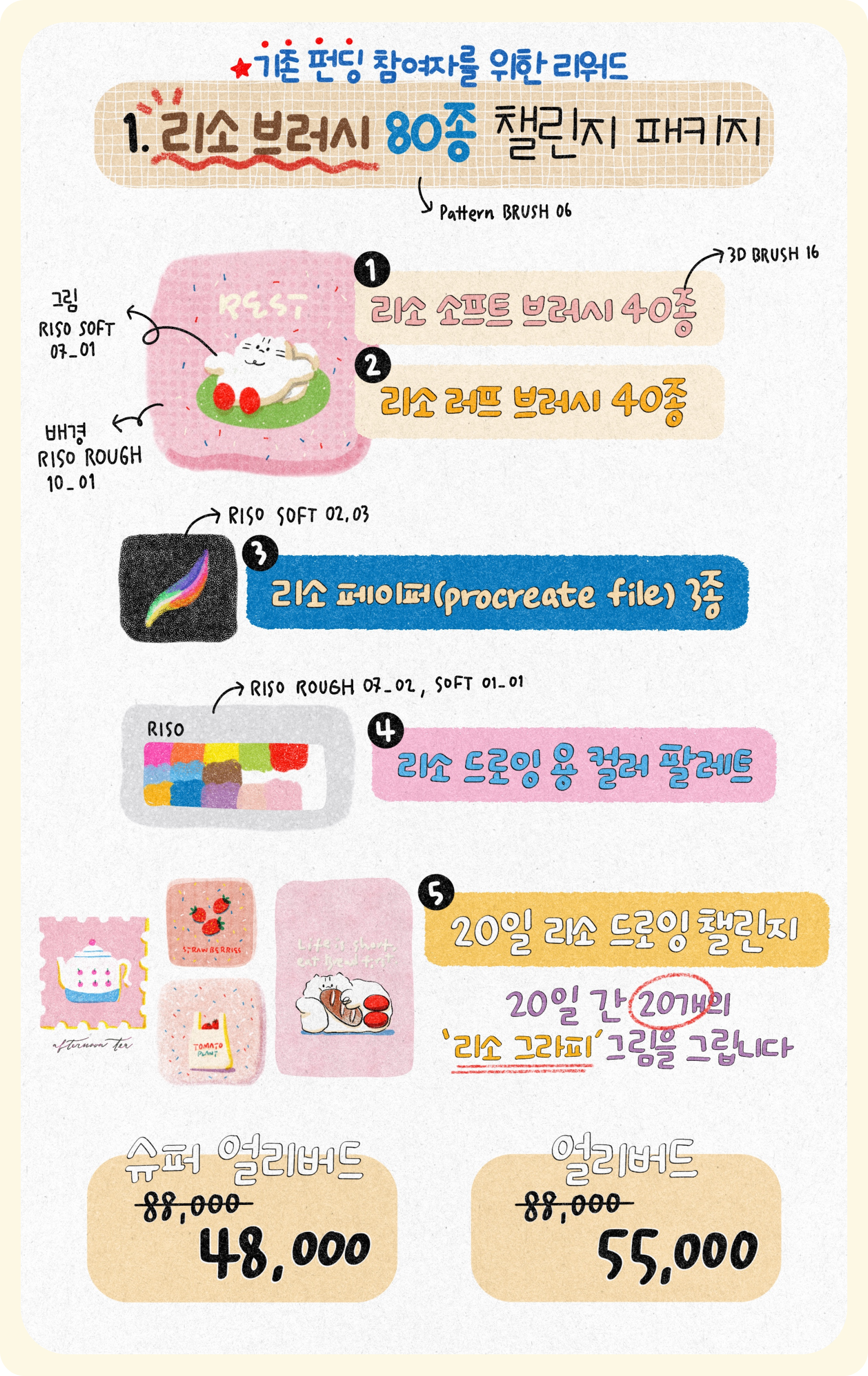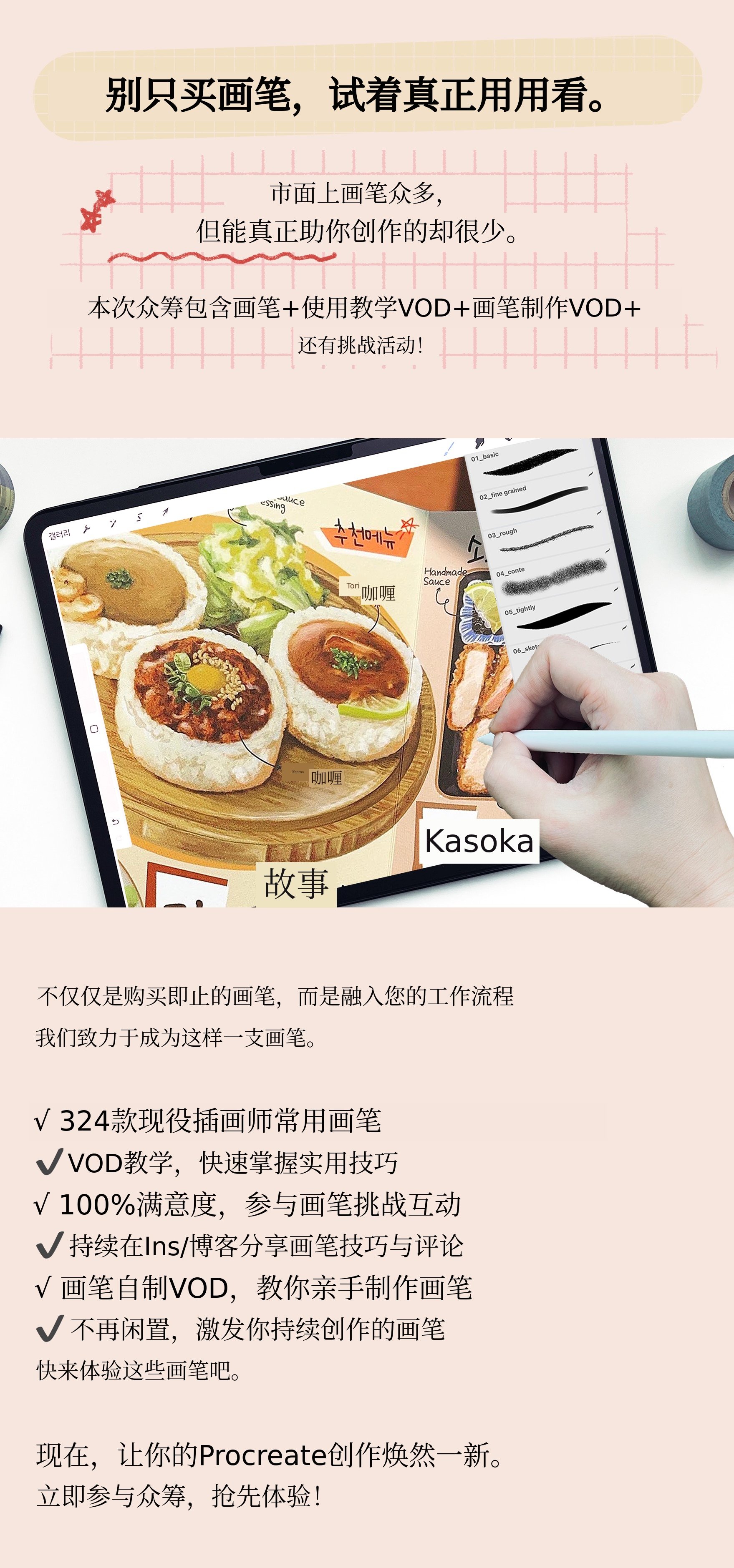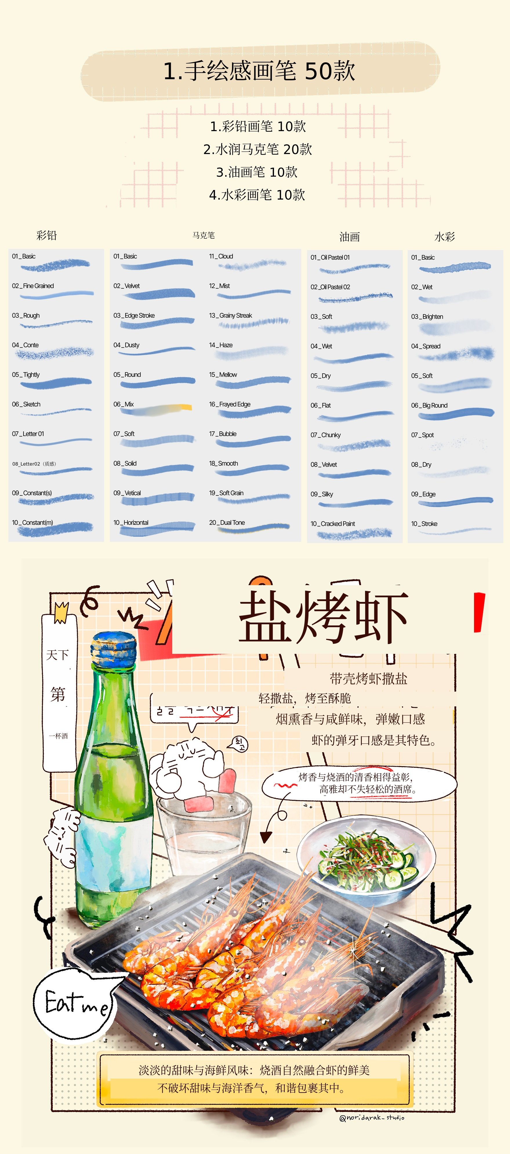 在这个过程中,凭借我积累的独家经验,制作了244种美食绘画终结画笔+80种RISO画笔。