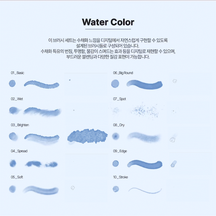 ✅ 包含湿润感(Wet)和干燥感(Dry)的多种画笔