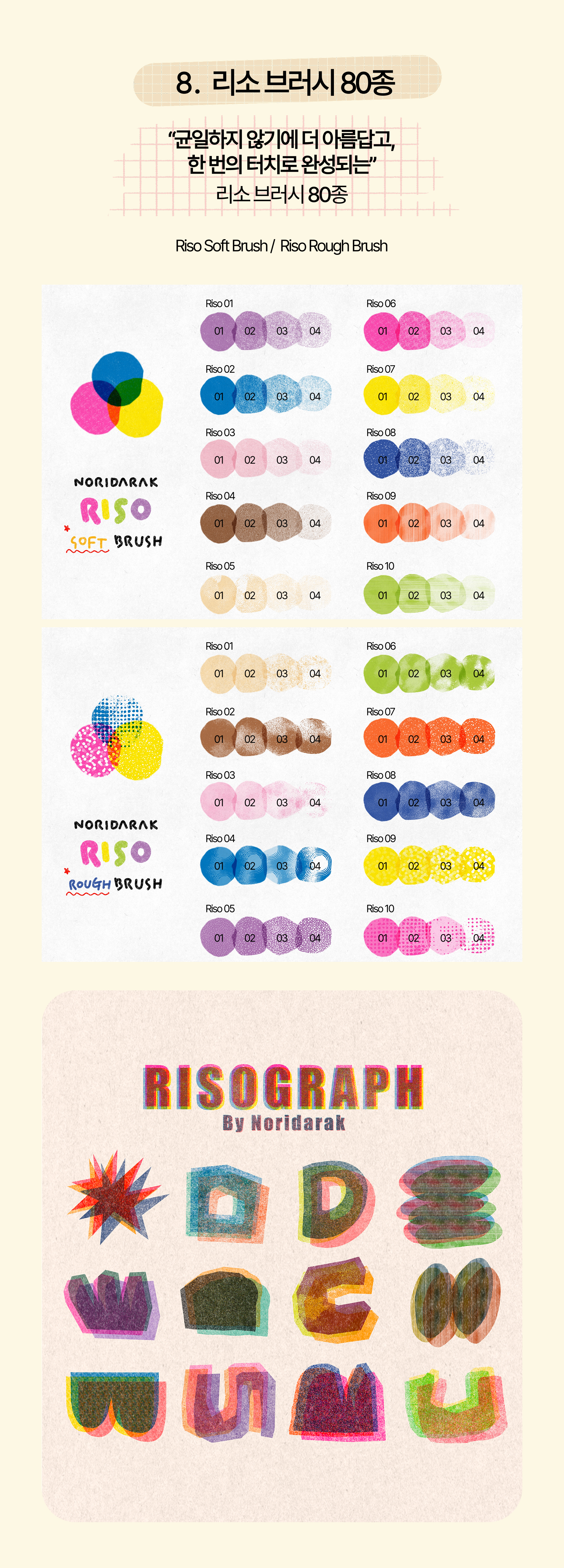 共80种画笔 可在数字中实现Riso印刷的多样质感。
