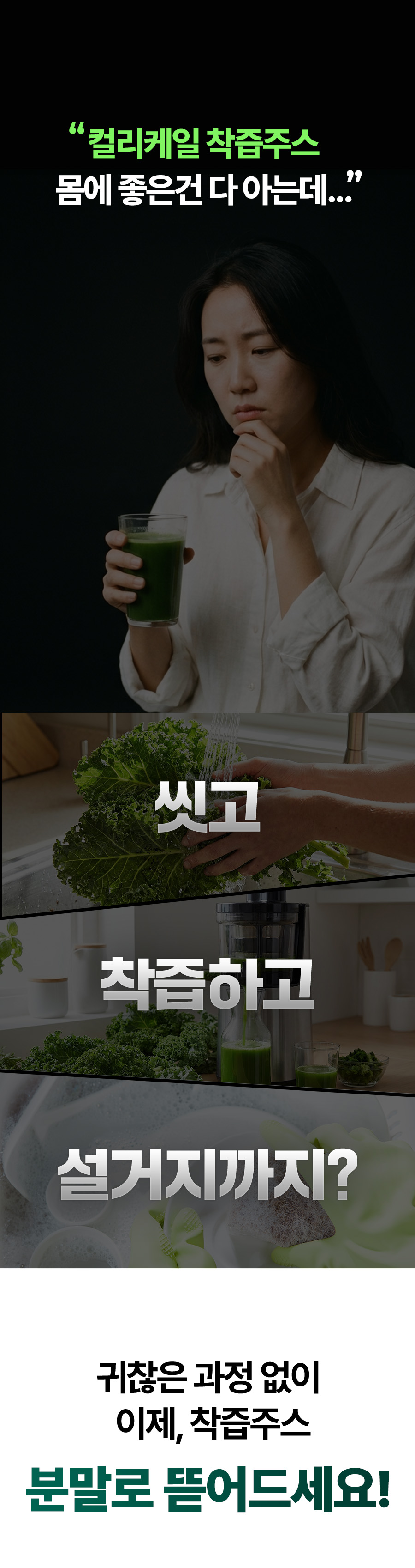이런 고민 끝에 저희의 컬리케일 '착즙분말'이 탄상했습니다.