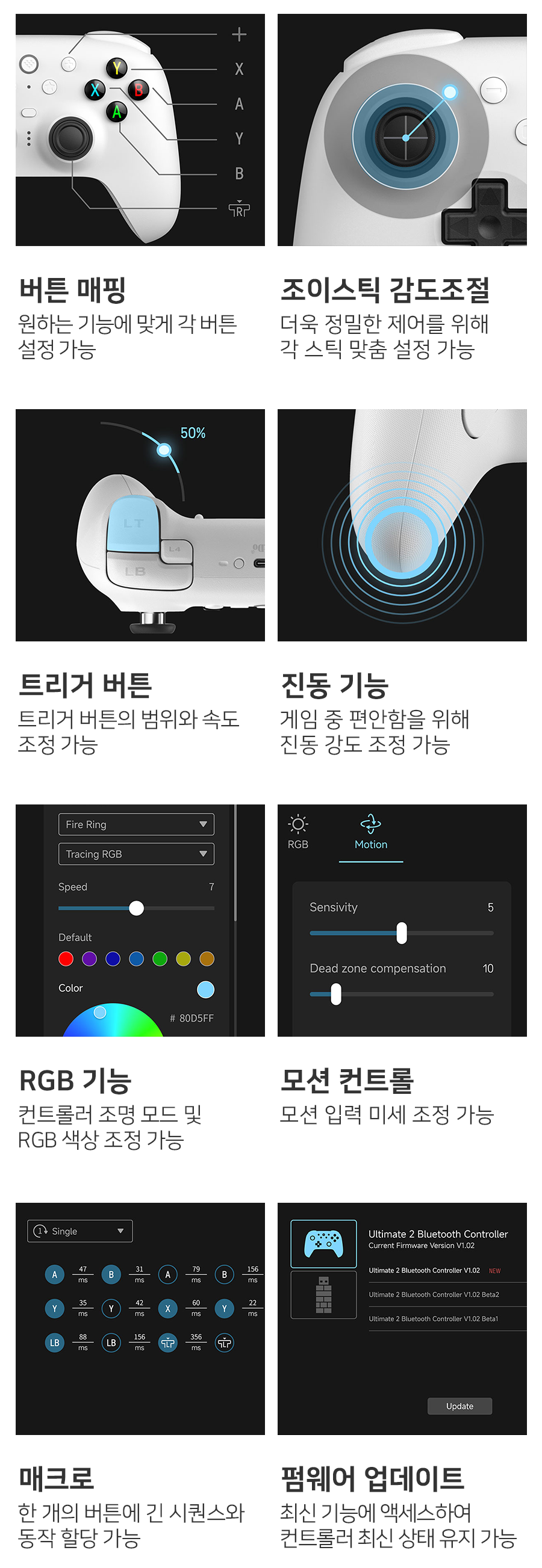 세련된 디자인과 탁월한 성능, 완벽을 추구하는 마감 품질로 유명한 8BitDo의 게임 컨트롤러, 키보드, 마우스 등 다양한 제품들을 국내 소비자 여러분께 소개하고 있습니다.