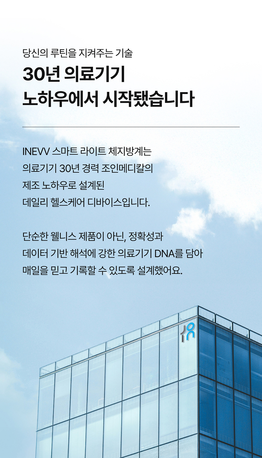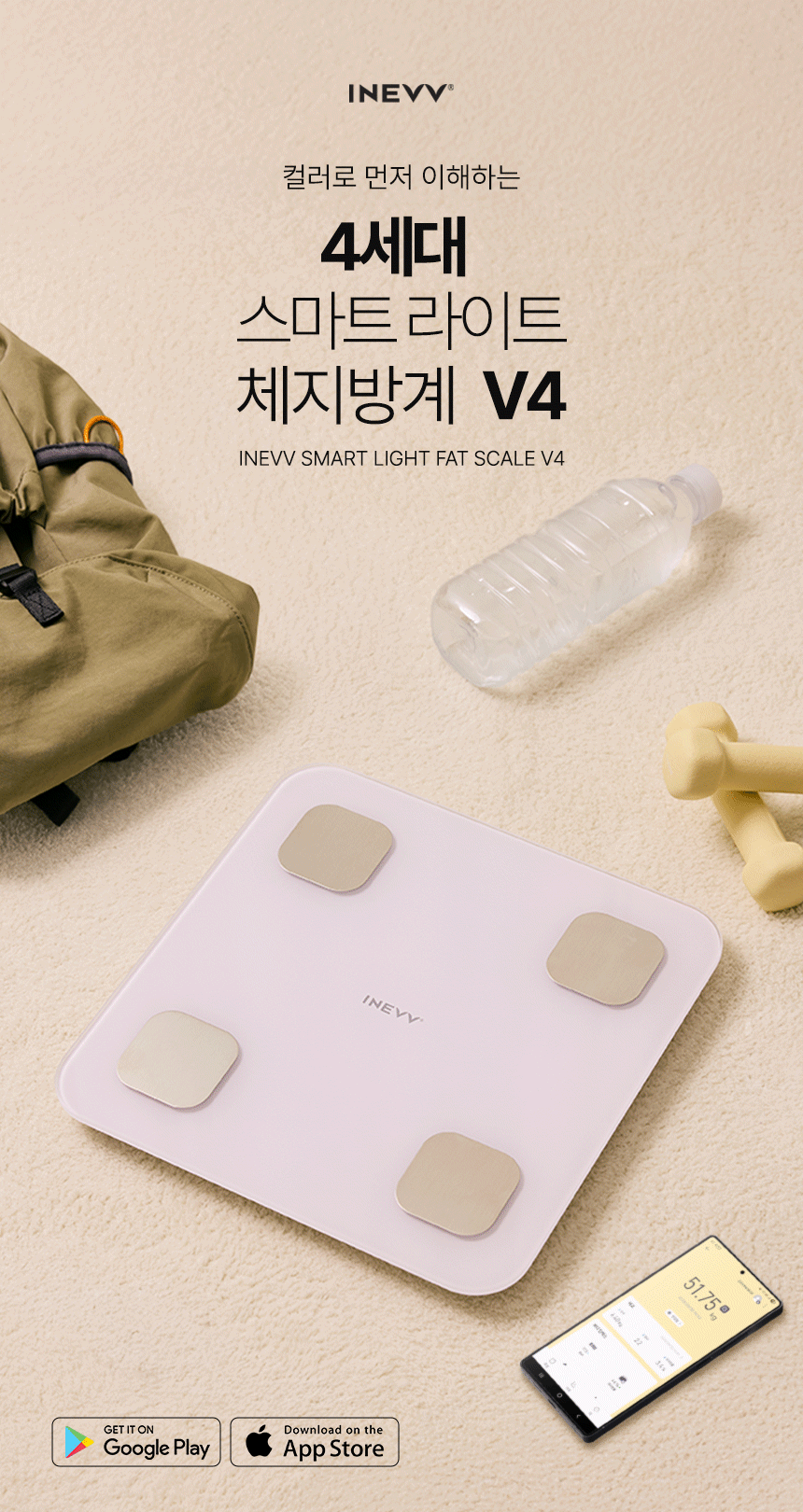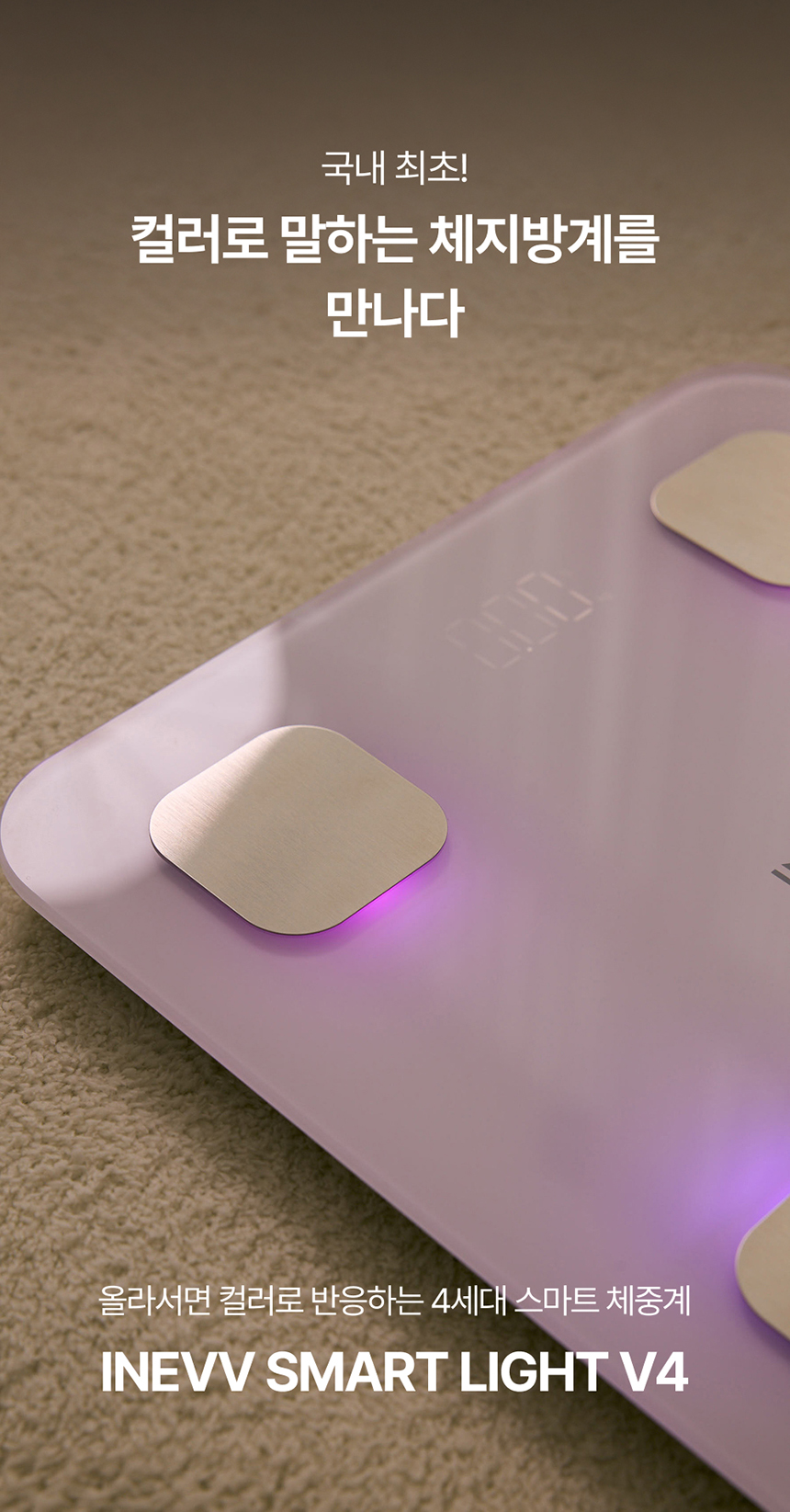 '숫자보다 먼저, 마음을 읽어주는 체중계는 없을까?'우리는 숫자가 주는 강박에서 벗어나, 내 몸의 변화 그 자체를 즐겁게 받아들일 수 있는 방법을 고민했습니다. 차가운 숫자 대신 직관적인 '빛'으로 당신을 응원하고, 건강 관리가 스트레스가 아닌 즐거운 루틴이 되기를 바라는 마음. 그것이 바로 이네브 스마트 라이트 체지방계 V4가 세상에 나오게 된 이유입니다.