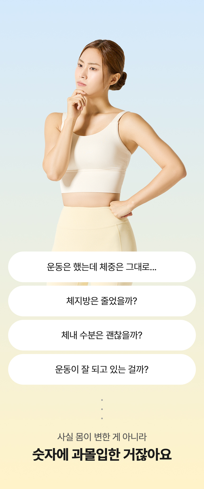 저희는 이 단순한 물음에서부터 시작했습니다. 많은 분들이 건강을 위해, 혹은 다이어트를 위해 매일 체중계에 오릅니다. 하지만 그 짧은 1초의 순간, 숫자가 주는 압박감 때문에 한숨을 쉬거나 기분이 좌우되는 경험을 하곤 합니다. 0.1kg의 미세한 변화에 예민해지고, 때로는 그 숫자가 마치 나를 판단하는 성적표처럼 느껴지기도 하죠.