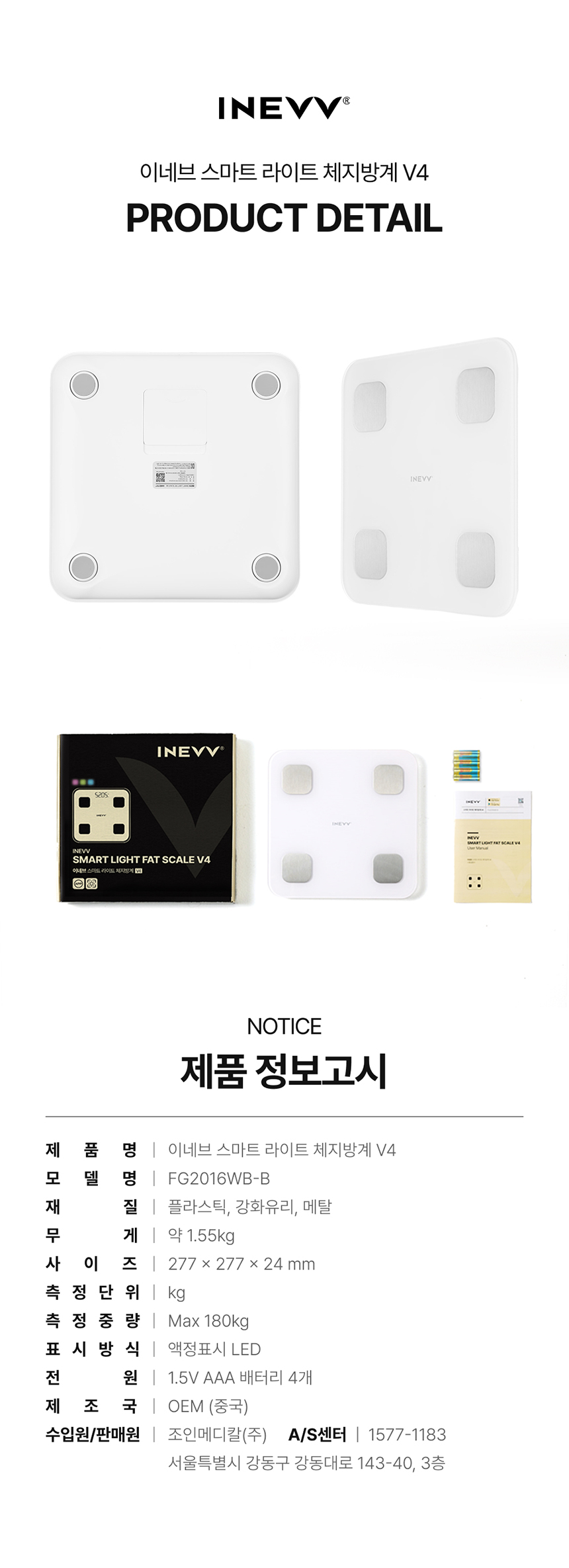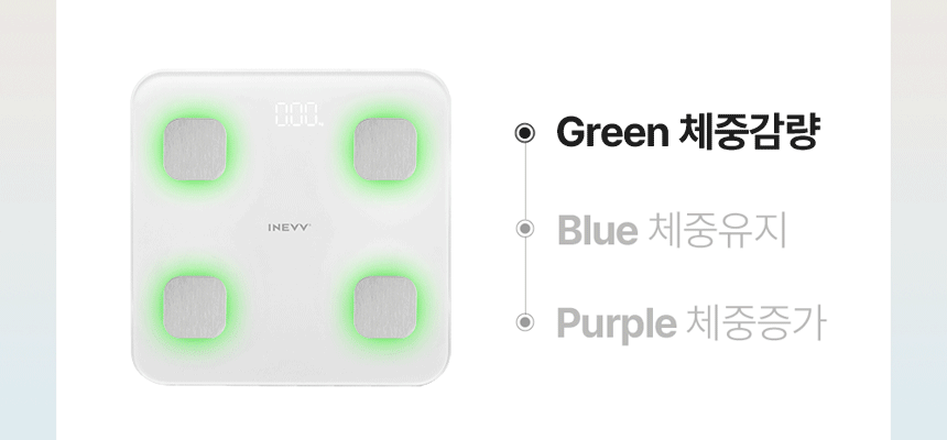 이네브 V4는 국내 최초로 전일 대비 체중 변화를 3가지 LED 컬러로 알려줍니다.