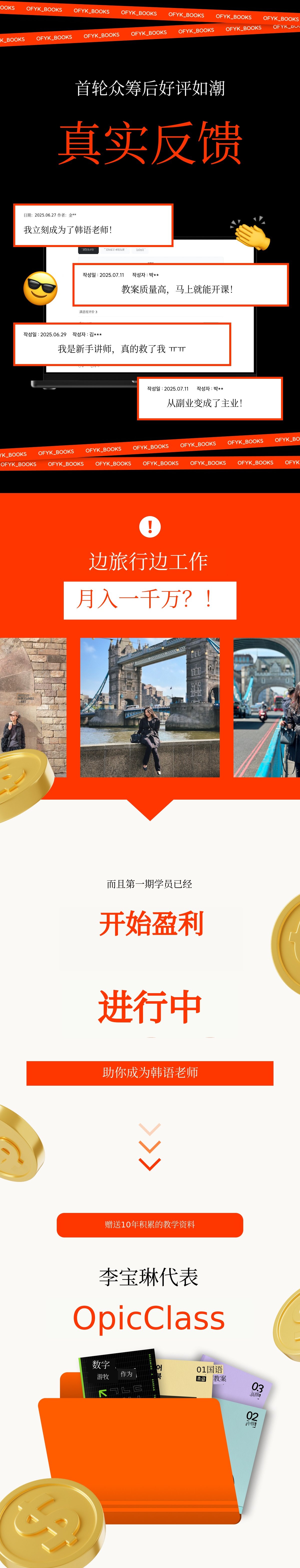 OFYK_Books是一家由在首尔地区大学拥有多年经验、在线及YouTube上具有讲课能力的李宝林代表创办的出版公司,专门制作韩语教师出道咨询与训练营。此外,多位讲师和团队成员也在训练营中共同引领课程,助力大家实现数字游牧生活。我们希望通过丰富而实用的资料,帮助大家开启人生的第二篇章。