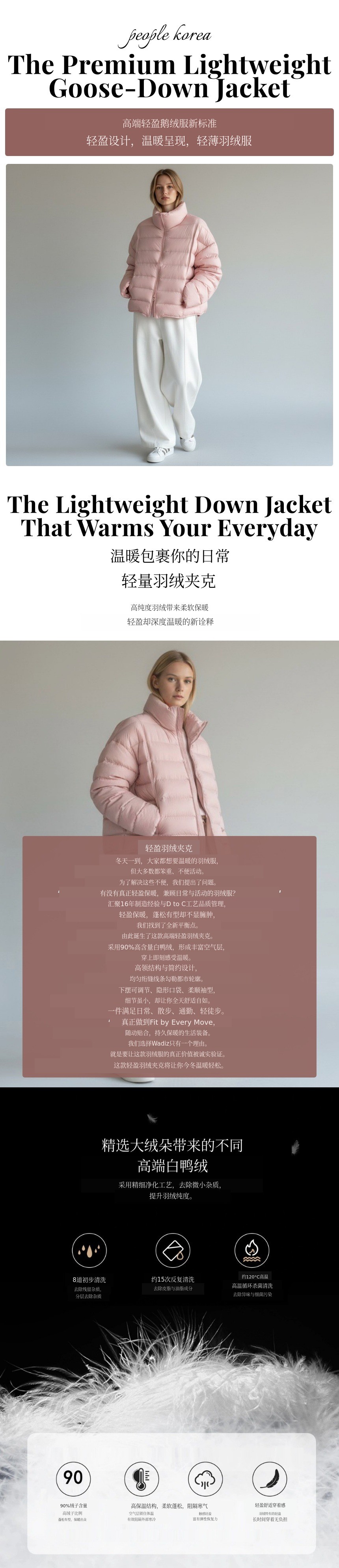 1. 🧥 超轻量高纯度白鸭绒羽绒服 - 轻盈保暖,采用高纯度白鸭绒 2. ❄️ 保暖与活动性兼备 - 3D立体裁剪与均匀绗缝设计 3. 🎁 限量款实用细节设计 - 含隐藏口袋与可调节抽绳