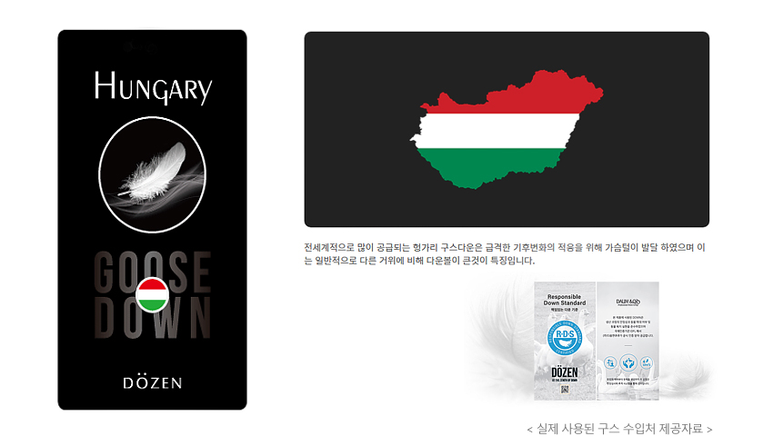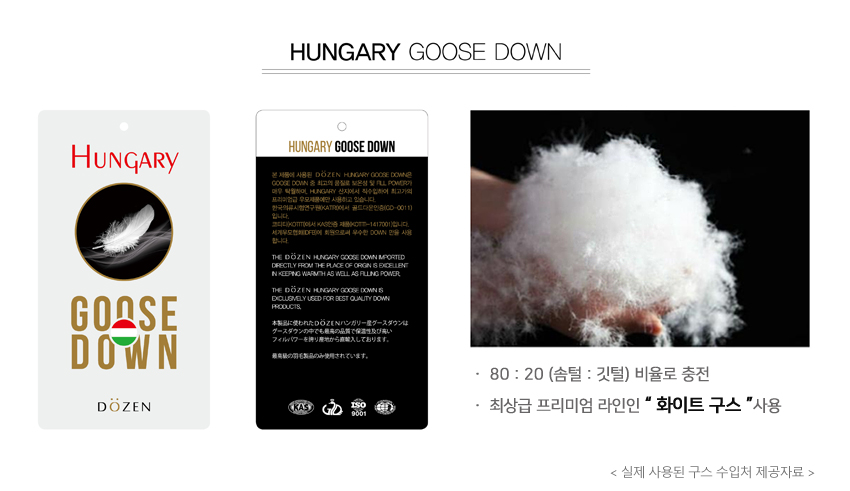 헝가리 구스 중에서도 최상급 프리미엄 라인인 화이트 구스를 사용했으며