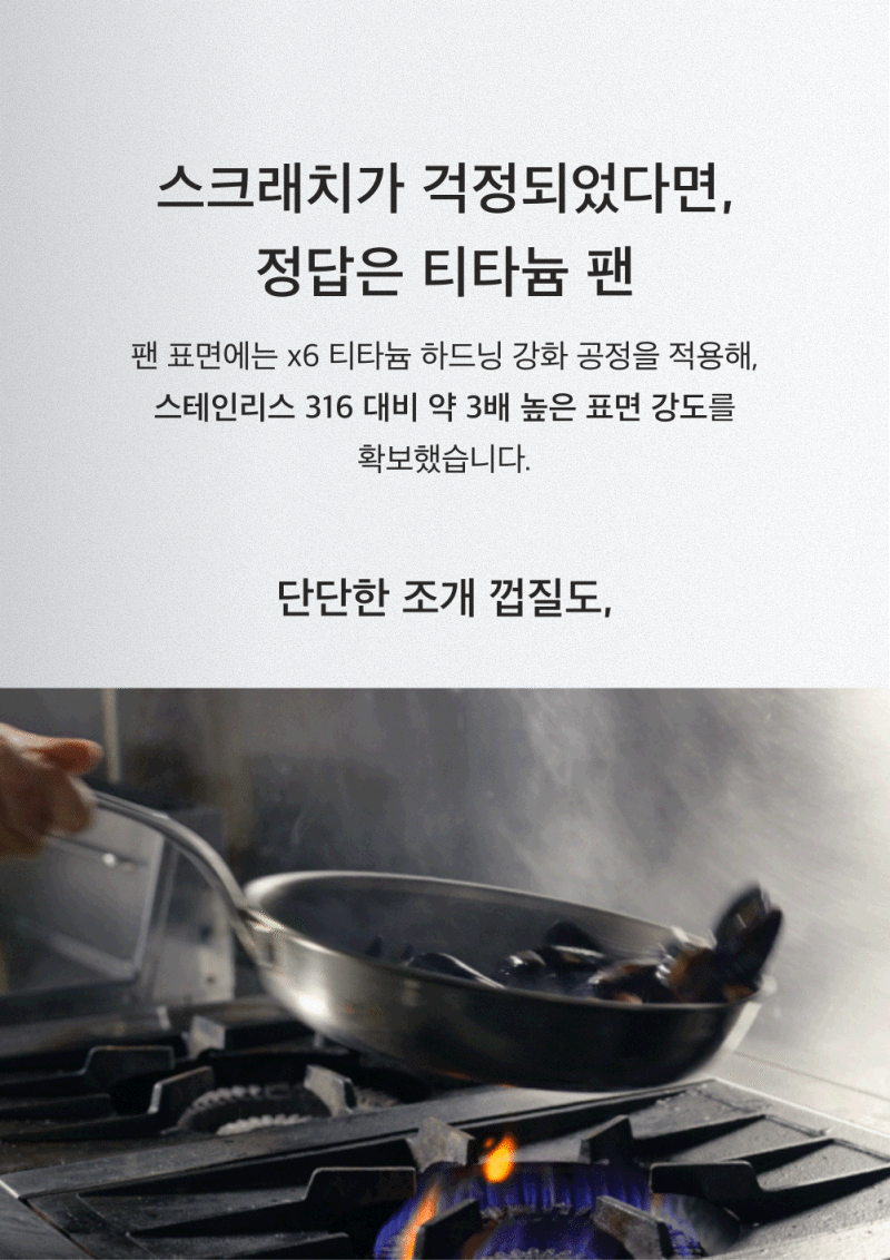 순도 99.5% 리얼 티타늄 표면으로 평생 쓸 수 있는 프라이팬, 많은 기대 부탁드립니다!