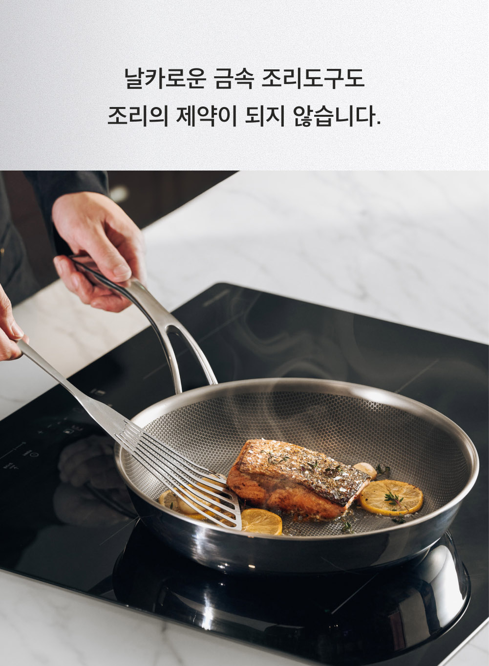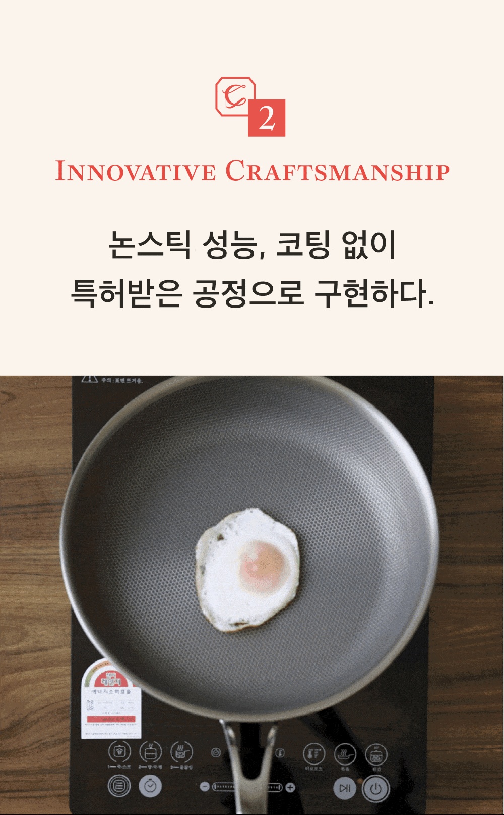 코팅 없이도 표면 구조만으로 음식물이 표면에 눌어붙지 않는 기술을 구현했습니다.