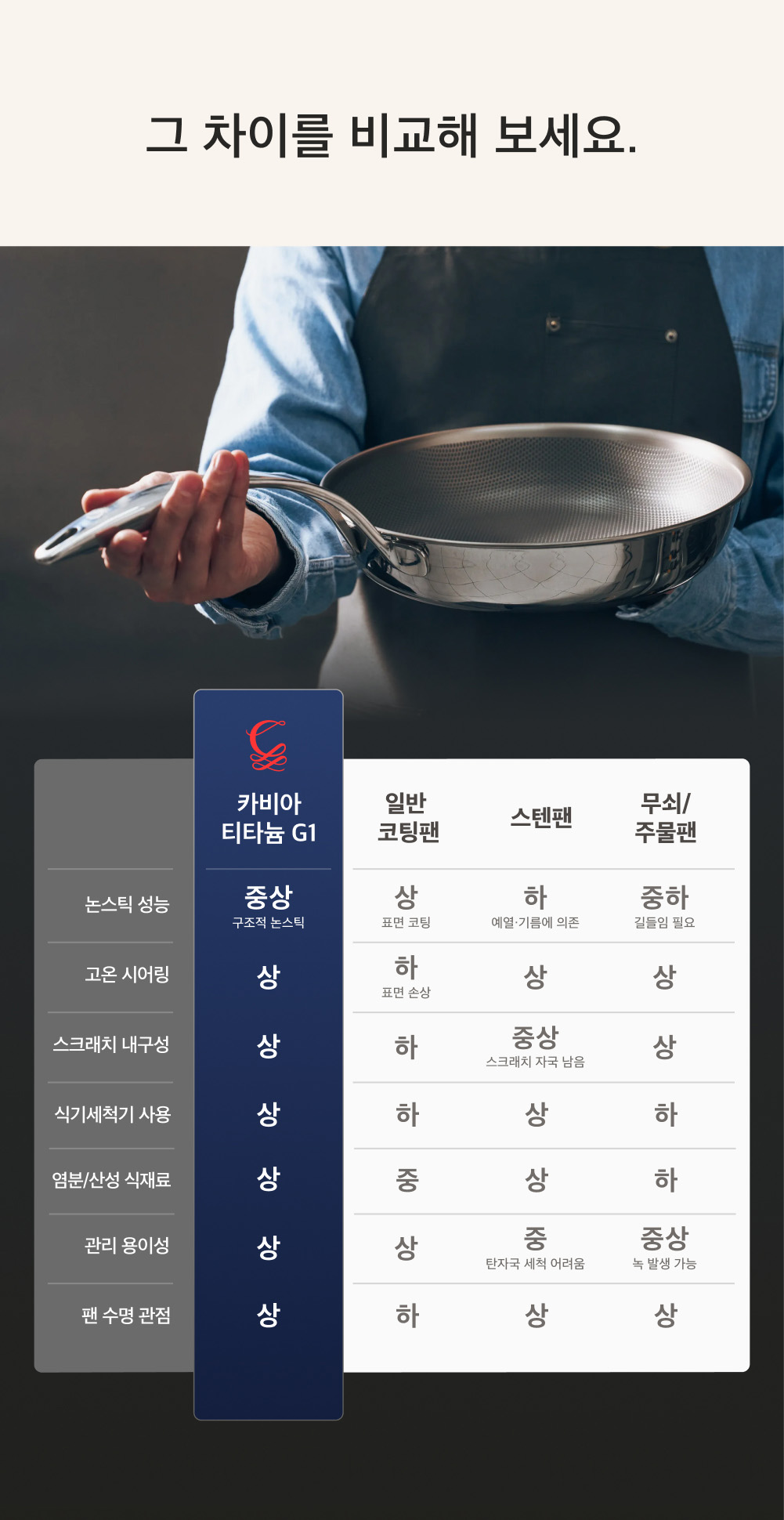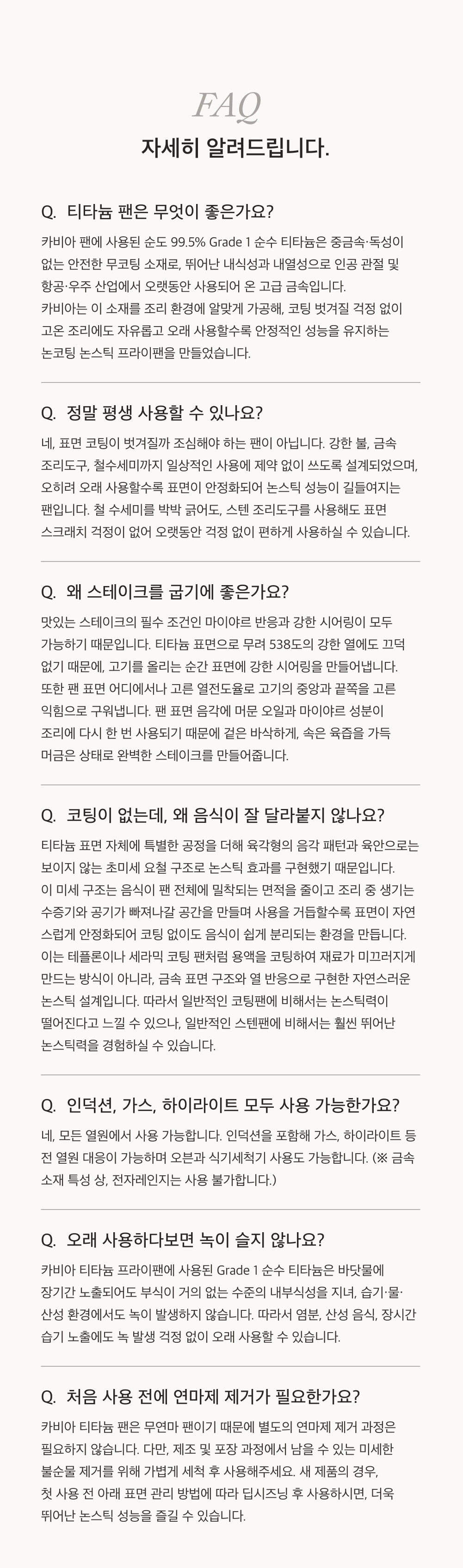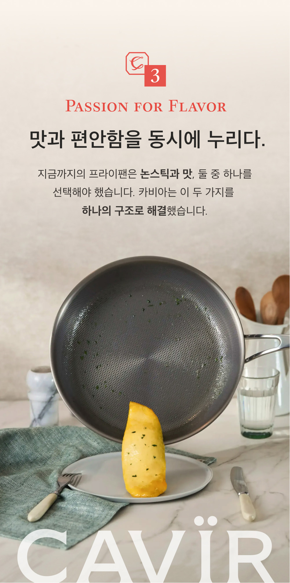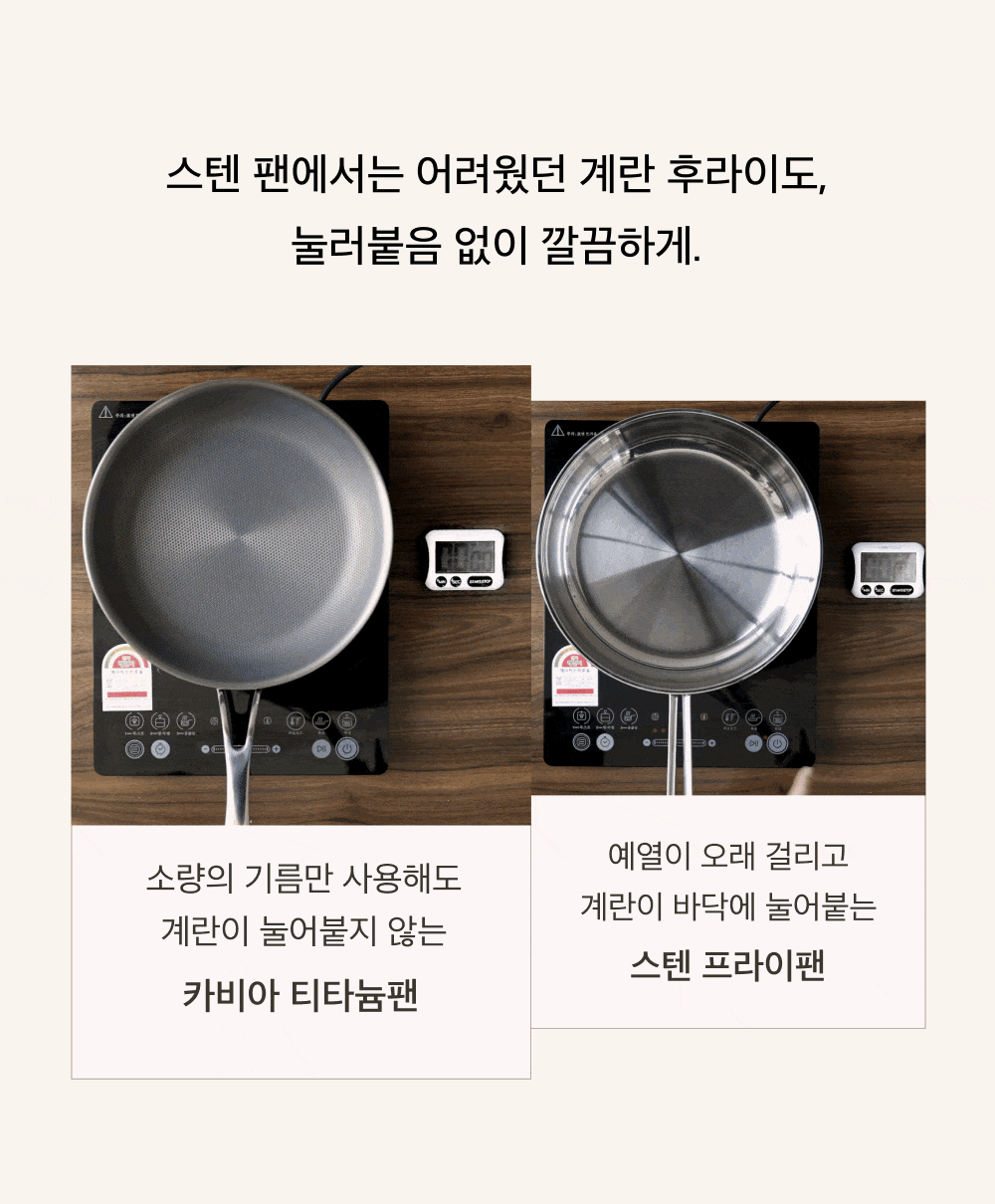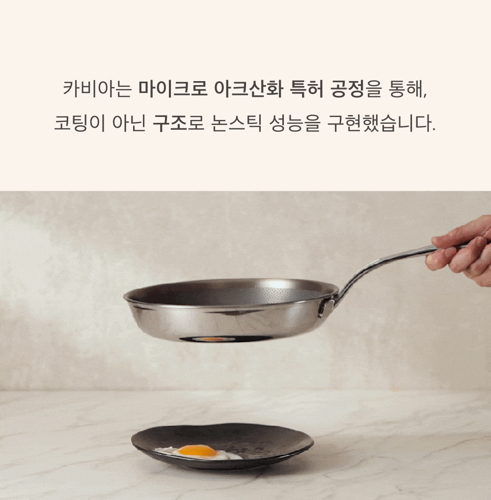 카비아의 논코팅 논스틱 티타늄 프라이팬은 오랜 기간 개발 끝에 탄생한 제품으로,