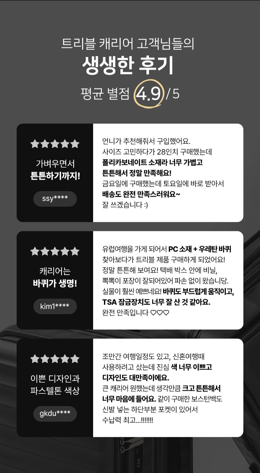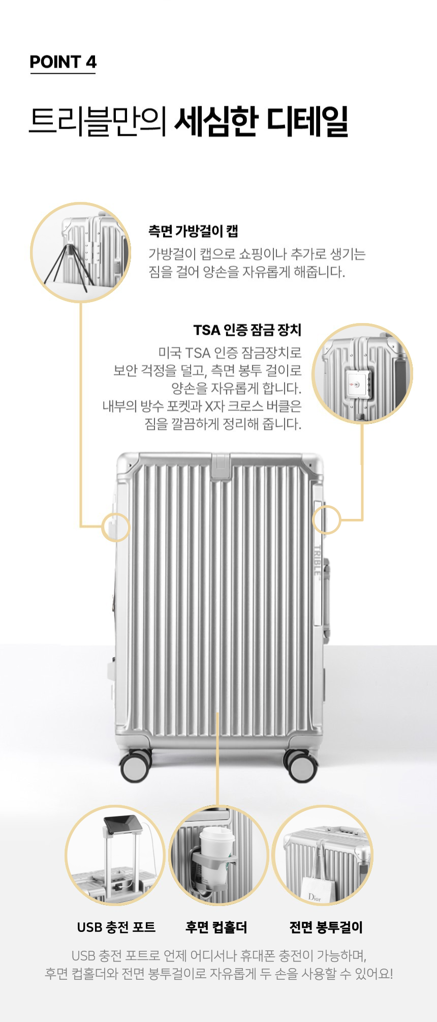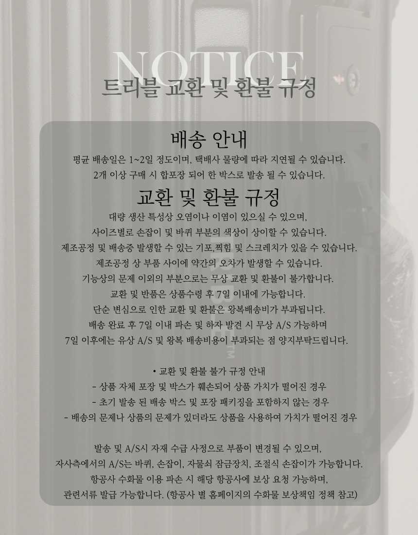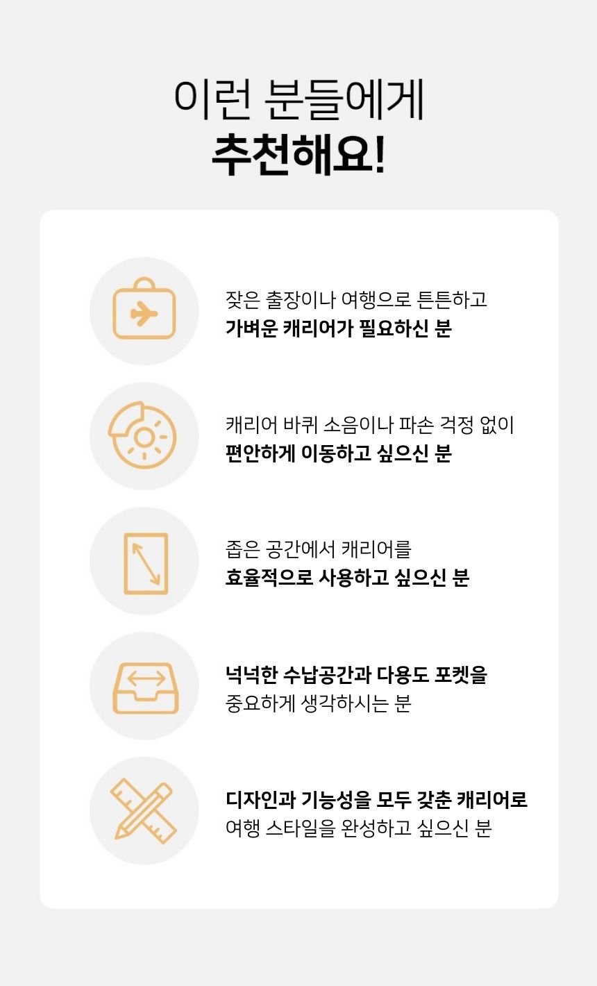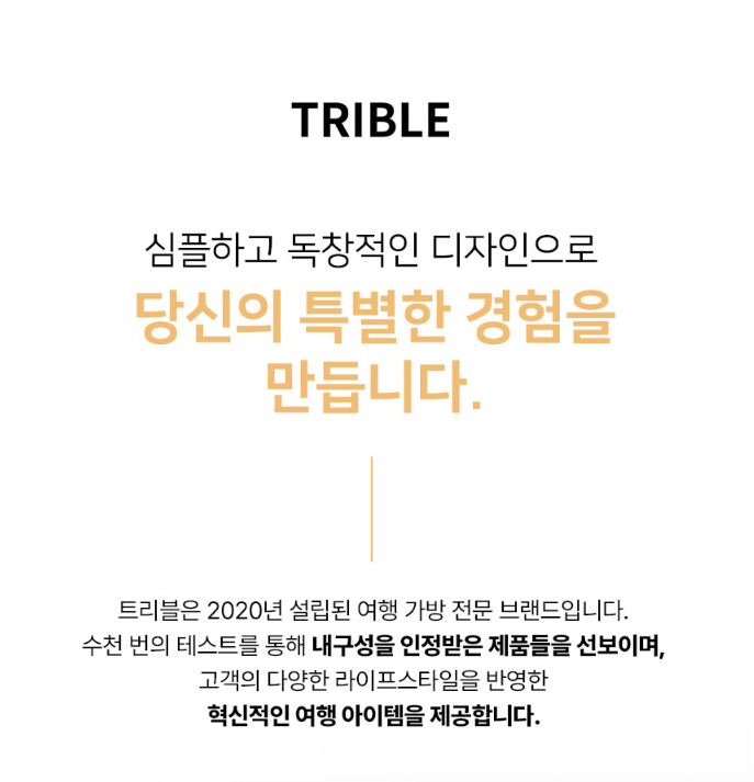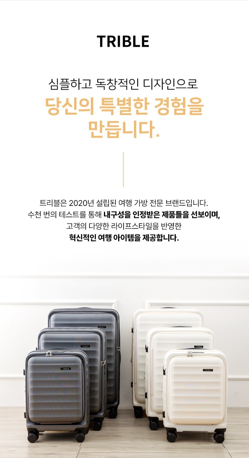 저희는 여행용 캐리어를 시작으로 심플하고 독창적인 스타일의 디자인과, 수천번의 테스트를 통해 내구성까지 인정 받은 캐리어 전문 브랜드입니다.