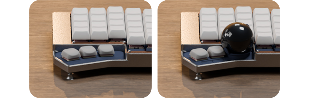 | 트랙볼 모듈 ✅️ (설계/수요에 따라 마우스버튼 탑재 고려) | 3-key 썸클러스터 모듈 ✅️ (설계/수요에 따라 마우스버튼 탑재 고려) |