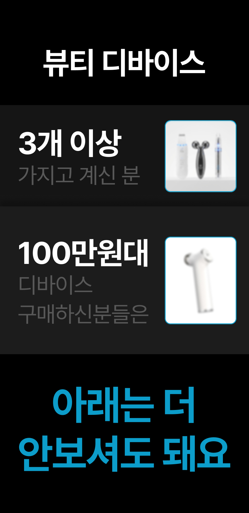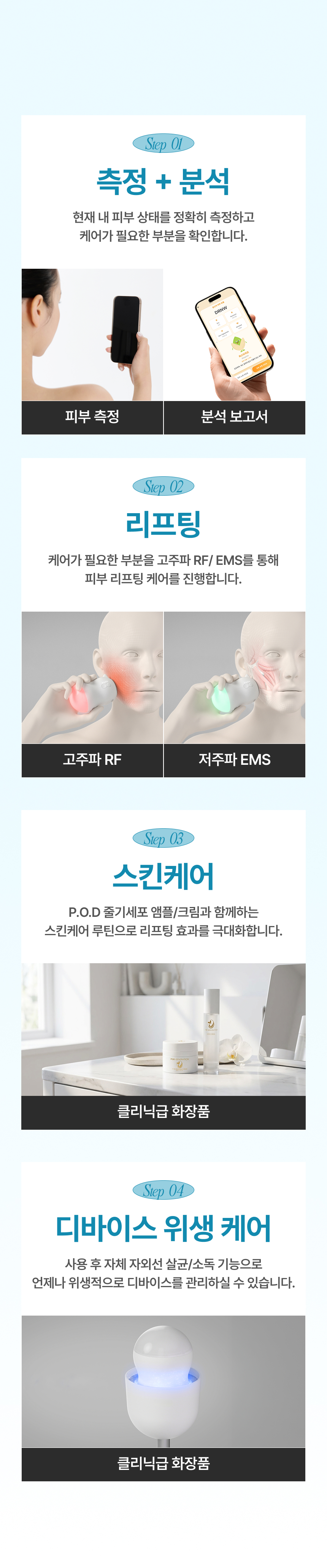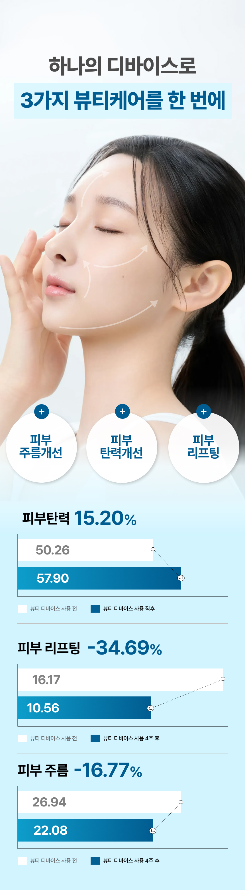 1. 💆‍♀️ 高频射频提拉仪 - 与皮肤科医生合作开发的20万韩元级提拉仪 2. 📊 皮肤状态测量 - 采用AI和蓝光LED精准分析皮肤 3. 🏠 居家专业护肤 - 与江南皮肤科医生合作的便捷居家护理