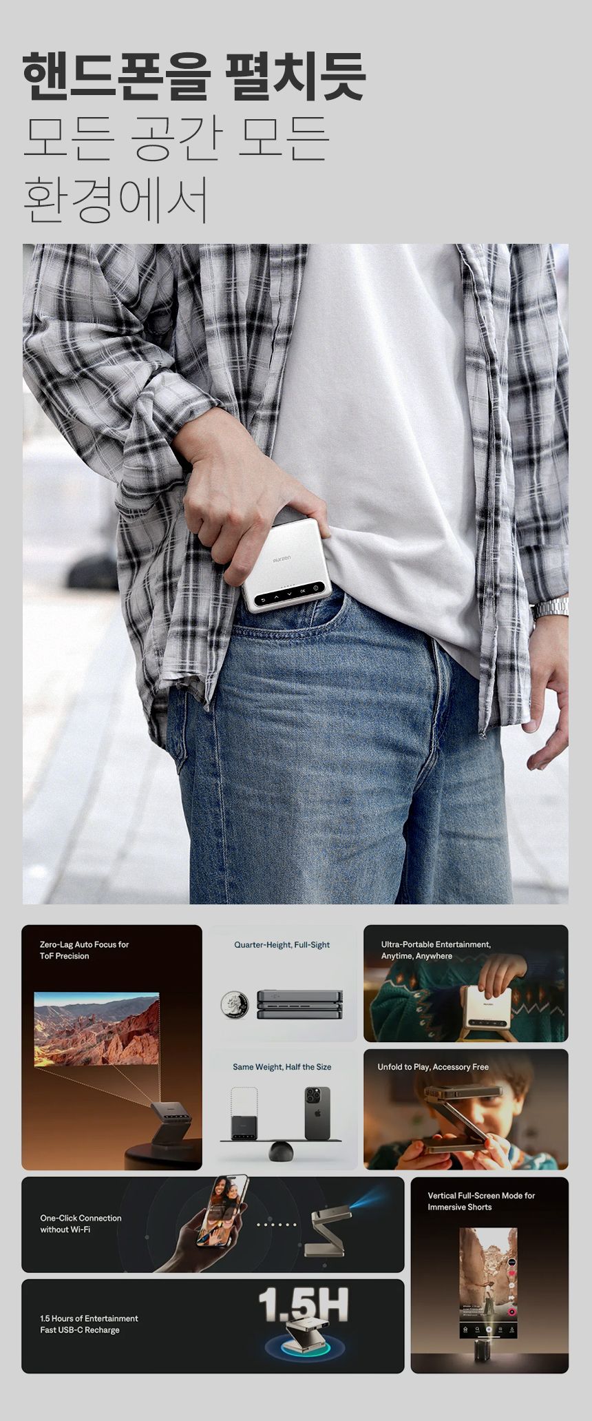 1. 📽️ 超迷你三折叠投影仪 - 手机大小,三折叠设计,便携性强 2. ⚡ 简便操作与快速充电 - 一键镜像,1.5小时播放,支持24W快充 3. 🎁 获奖设计与独家优惠 - CES获奖,金属质感,独家众筹福利